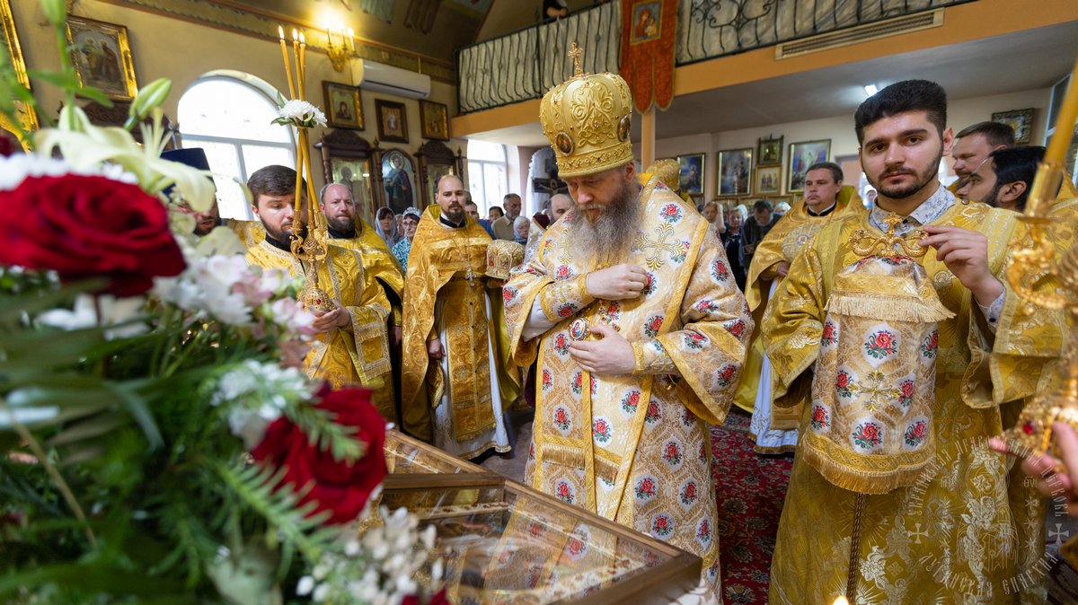 В завершение богослужения владыка Пантелеимон поздравил настоятеля и паству с праздником, именинников с днем их небесных покровителей; благословил заботиться о доме Божием, о своем спасении и прославлять едиными устами Бога, дивного во святых своих.