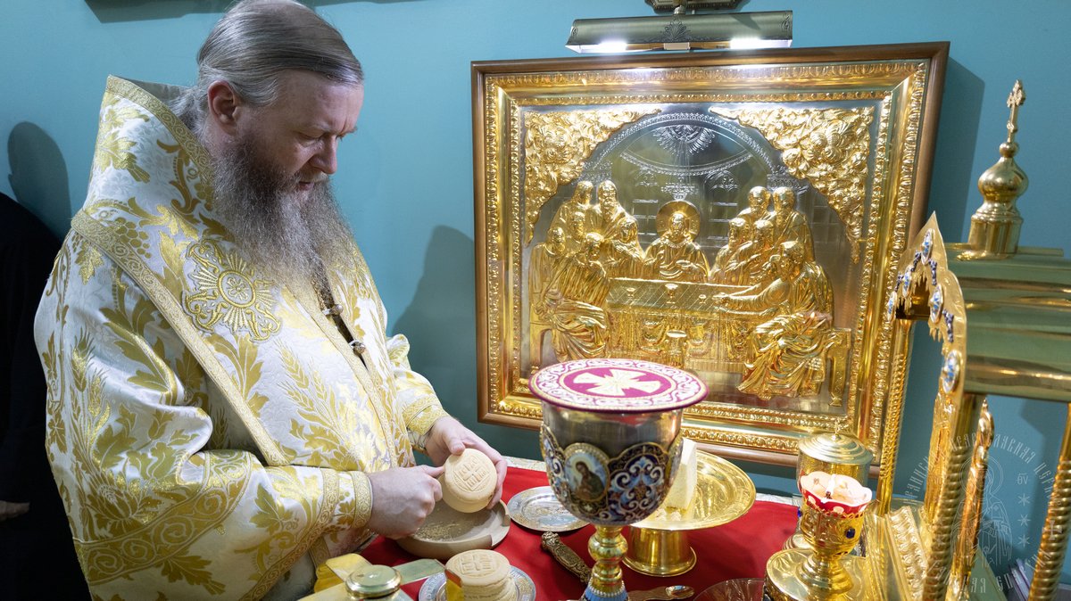 После сугубой ектении, владыка вознес молитву о мире и умножении любви среди народа Отечества нашего и молитву об исцелении болящих.