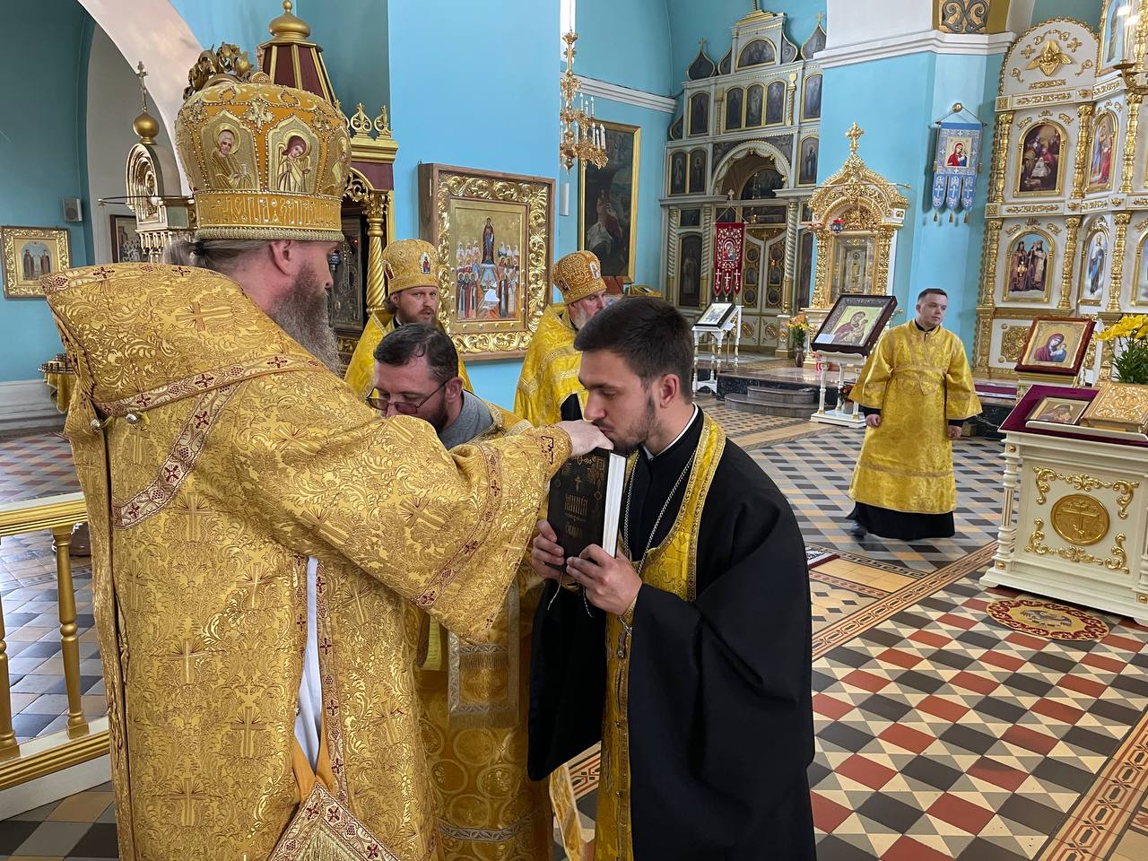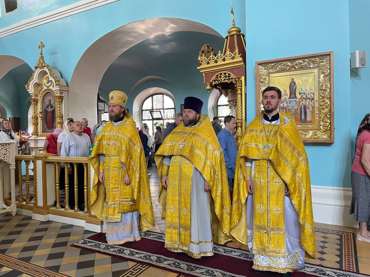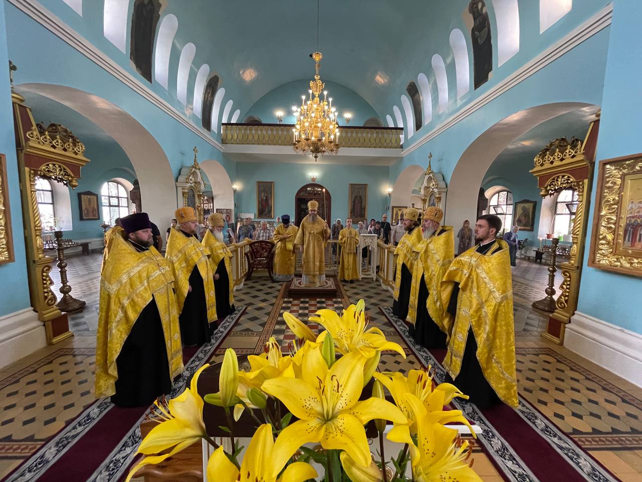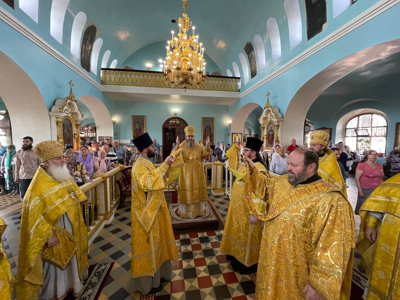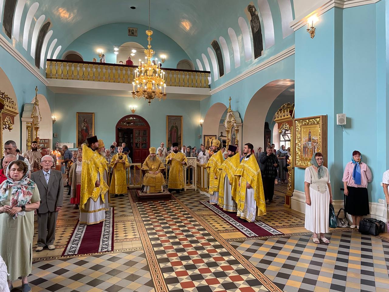 За Божественной литургией Его Высокопреосвященству сослужило соборное духовенство.