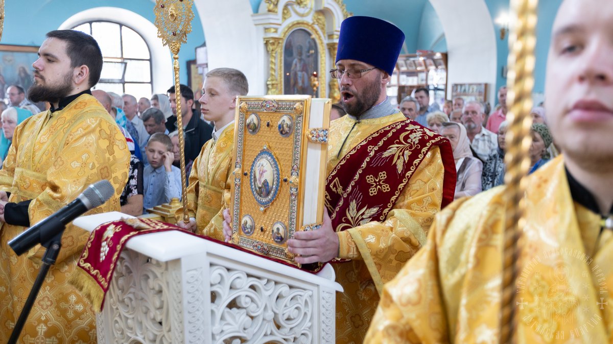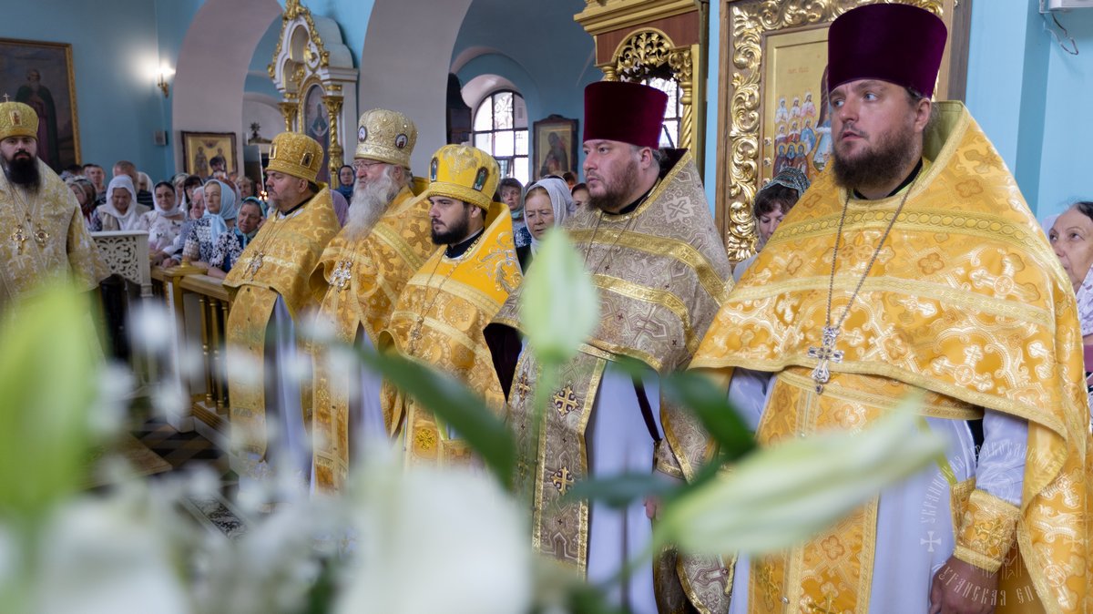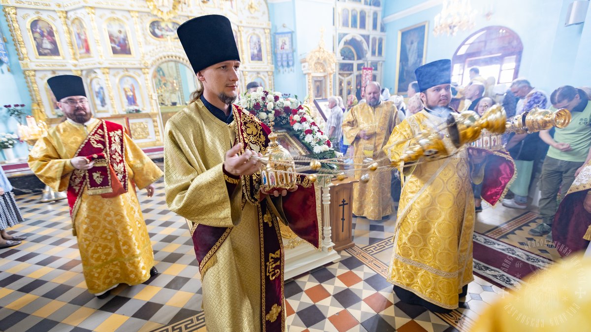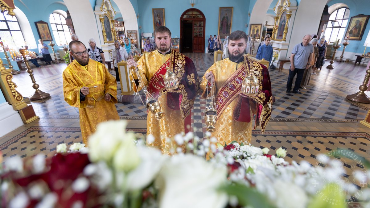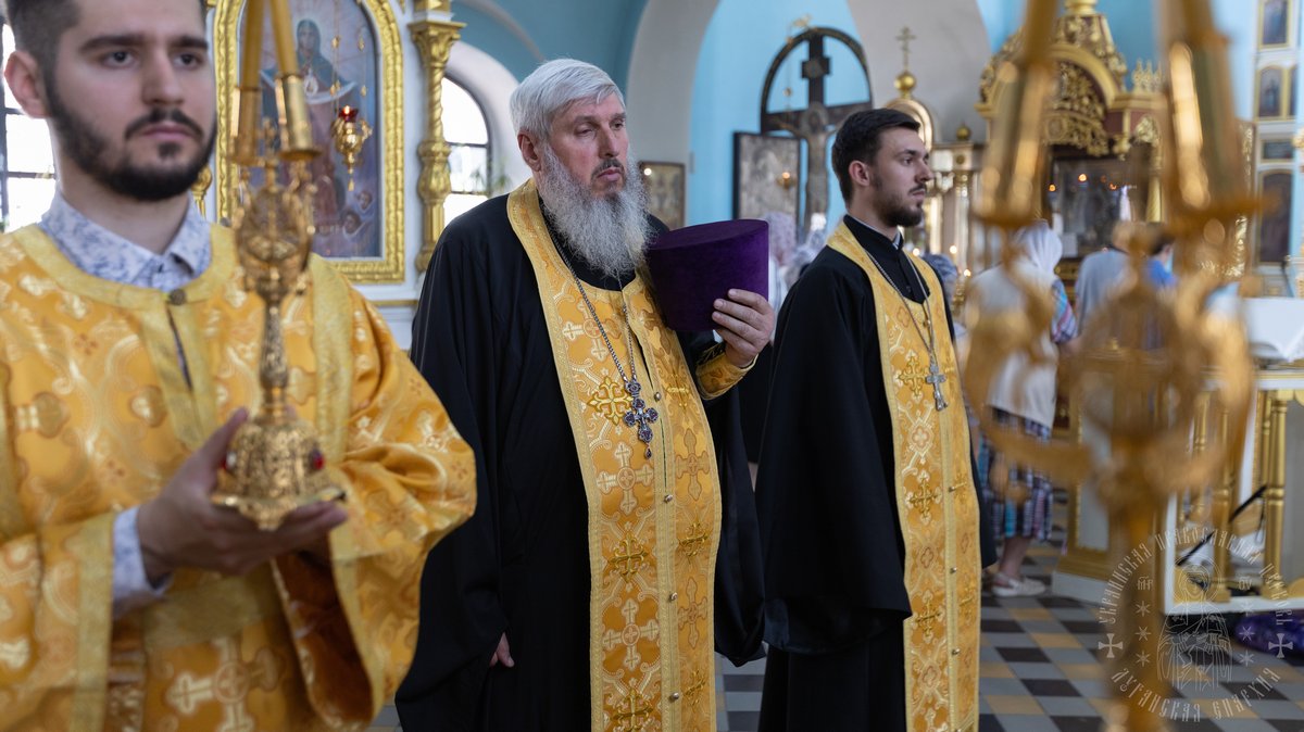 12 июля, в праздник святых славных и всехвальных первоверховных апостолов Петра и Павла, Высокопреосвященнейший Пантелеимон, митрополит Луганский и Алчевский в сослужении Высокопреосвященейшего Никодима, митрополита Северодонецкого и Старобельского и викария Северодонецкой епархии Высокопреосвященнейшего Иринарха, архиепископа Новопсковского, возглавил Божественную литургию в Свято-Петро-Павловском кафедральном соборе г. Луганска, по случаю престольного торжества.