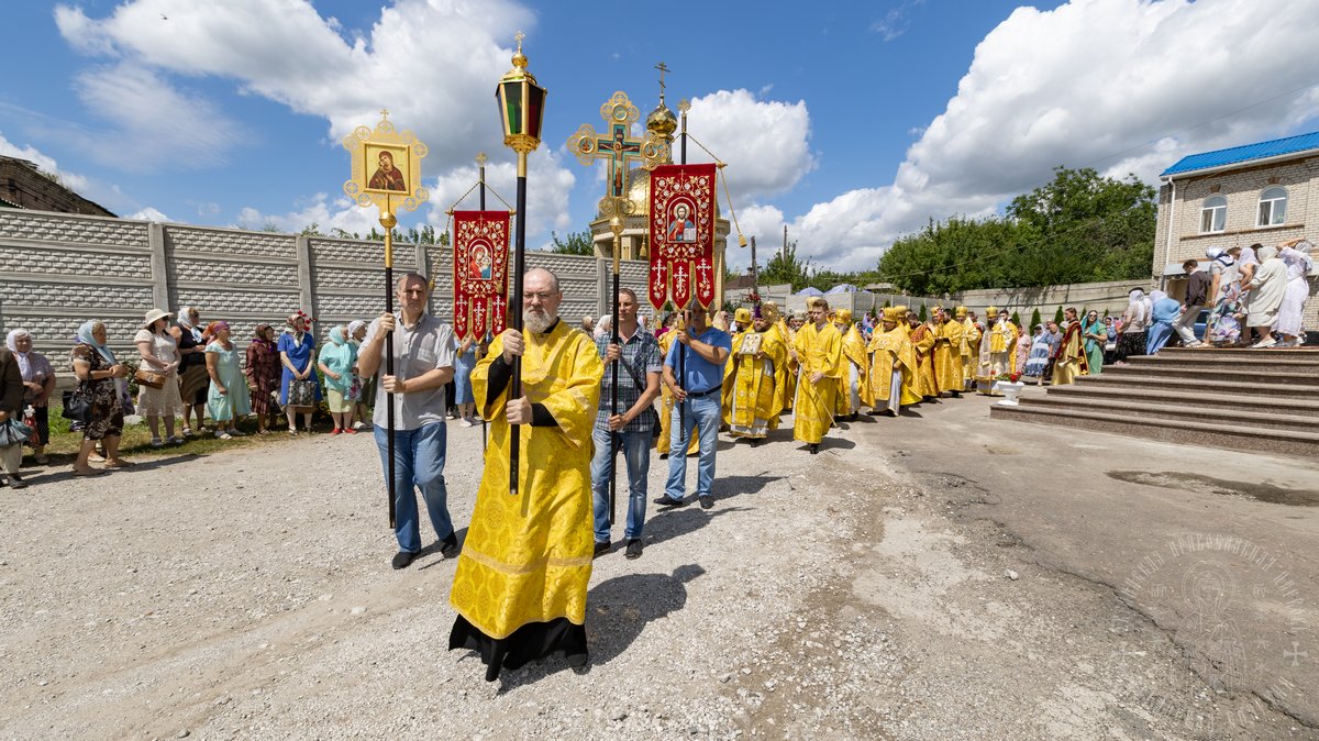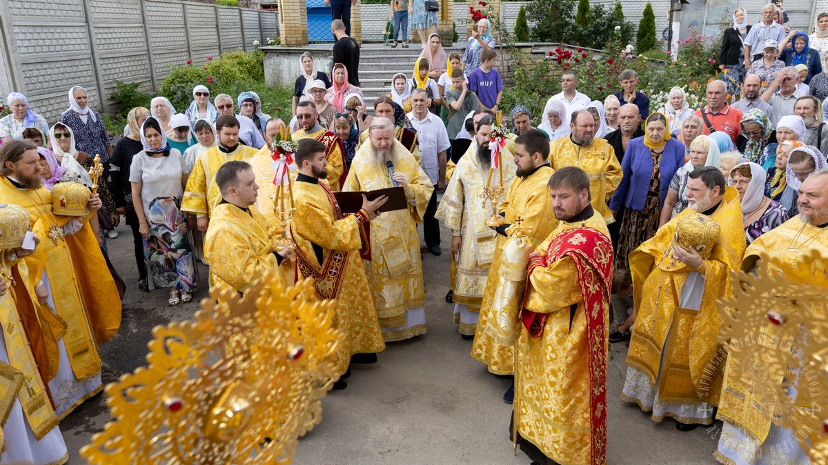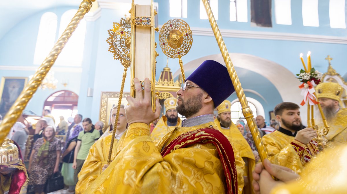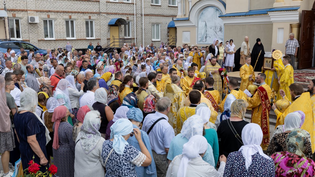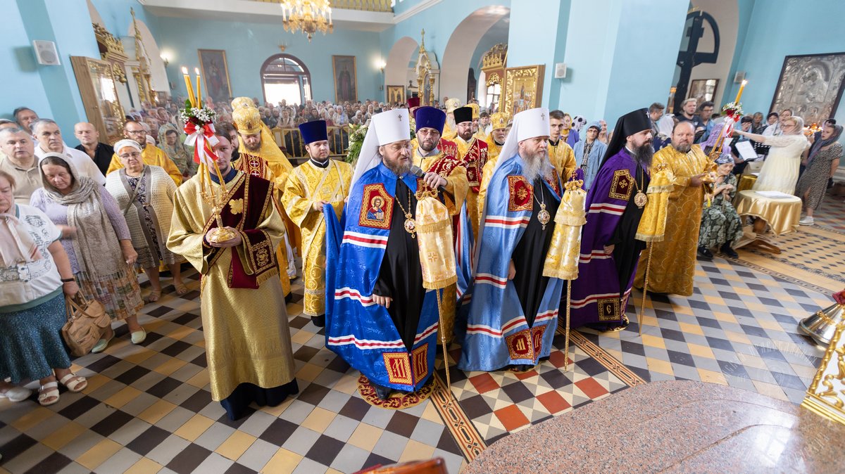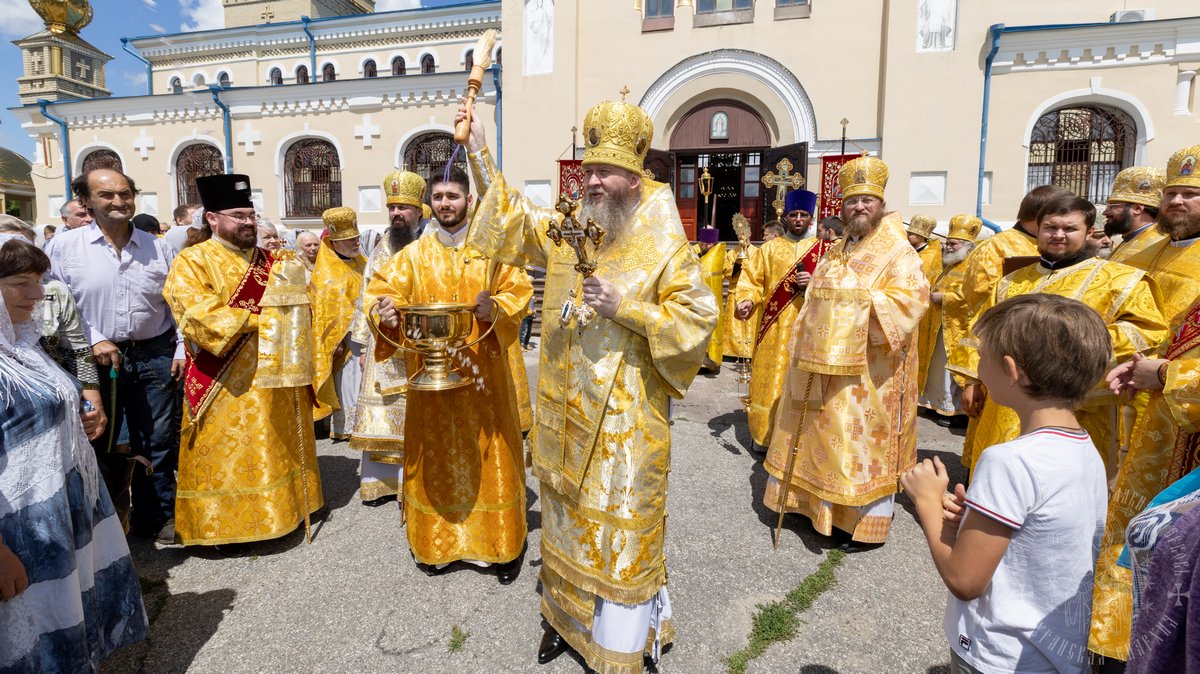 По окончании Божественной Литургии, Преосвященные владыки, духовенство и верующий народ совершили крестный ход вокруг храма, во время которого молились святым покровителям собора.