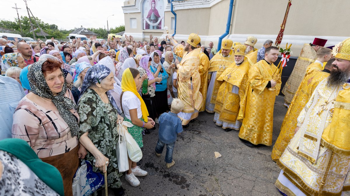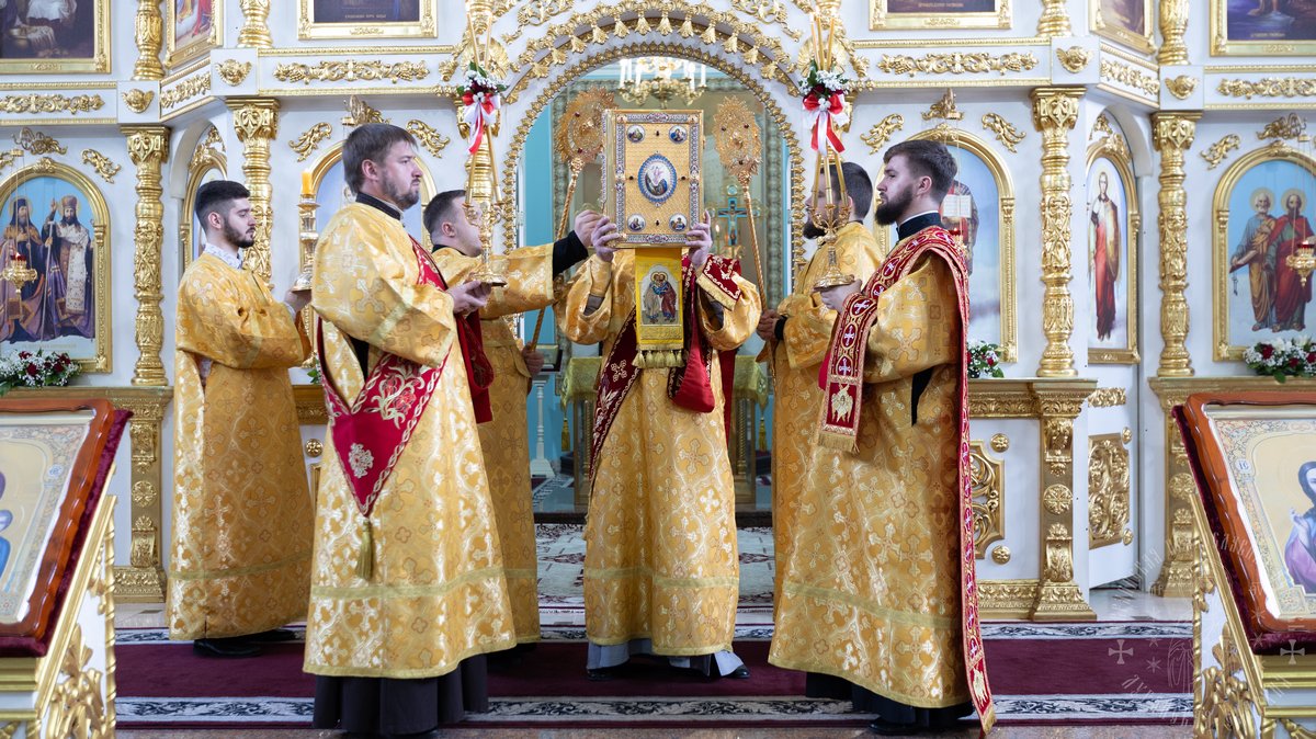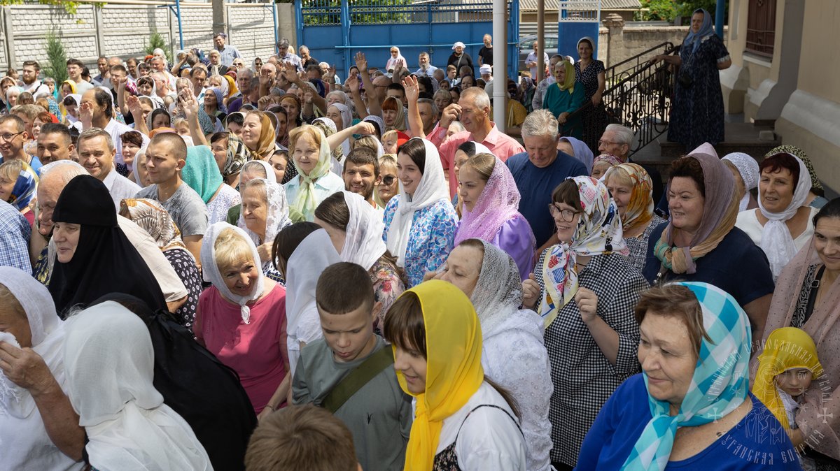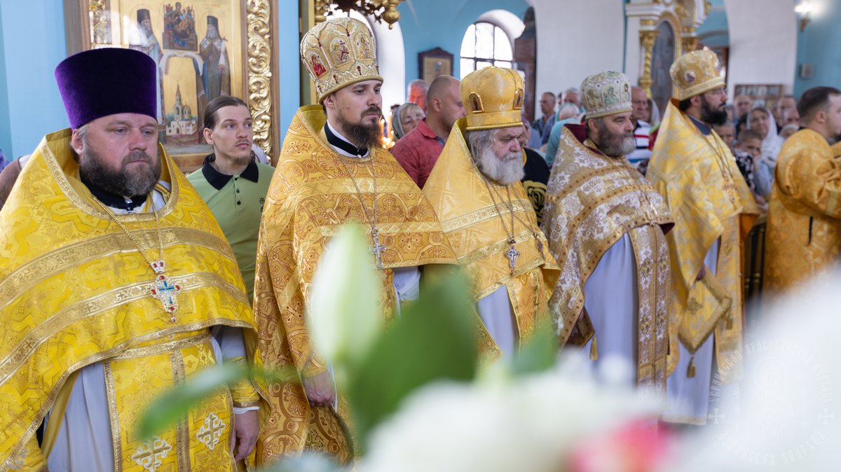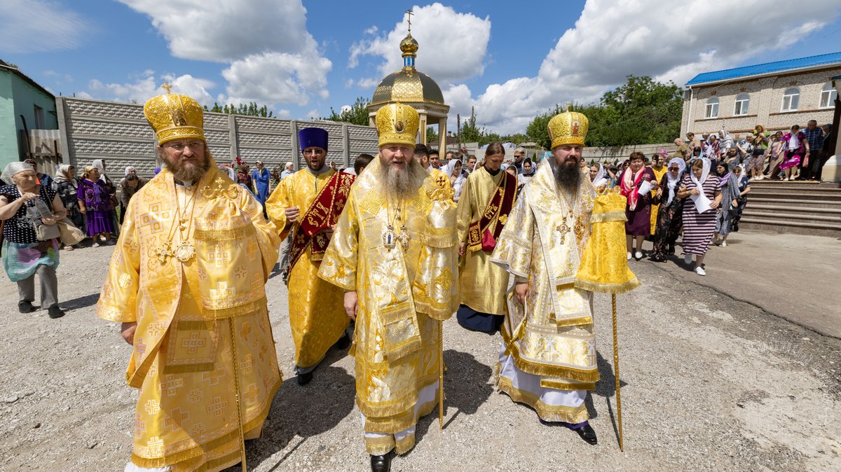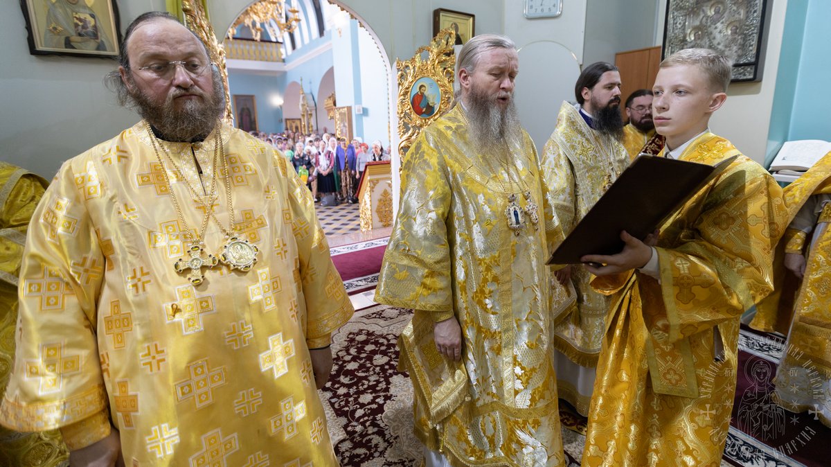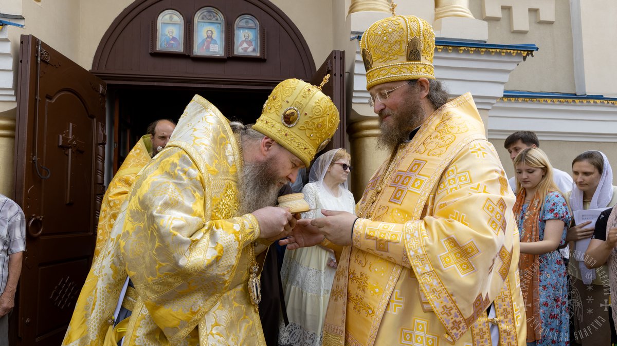 По окончании Божественной Литургии, Преосвященные владыки, духовенство и верующий народ совершили крестный ход вокруг храма, во время которого молились святым покровителям собора.