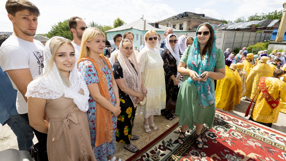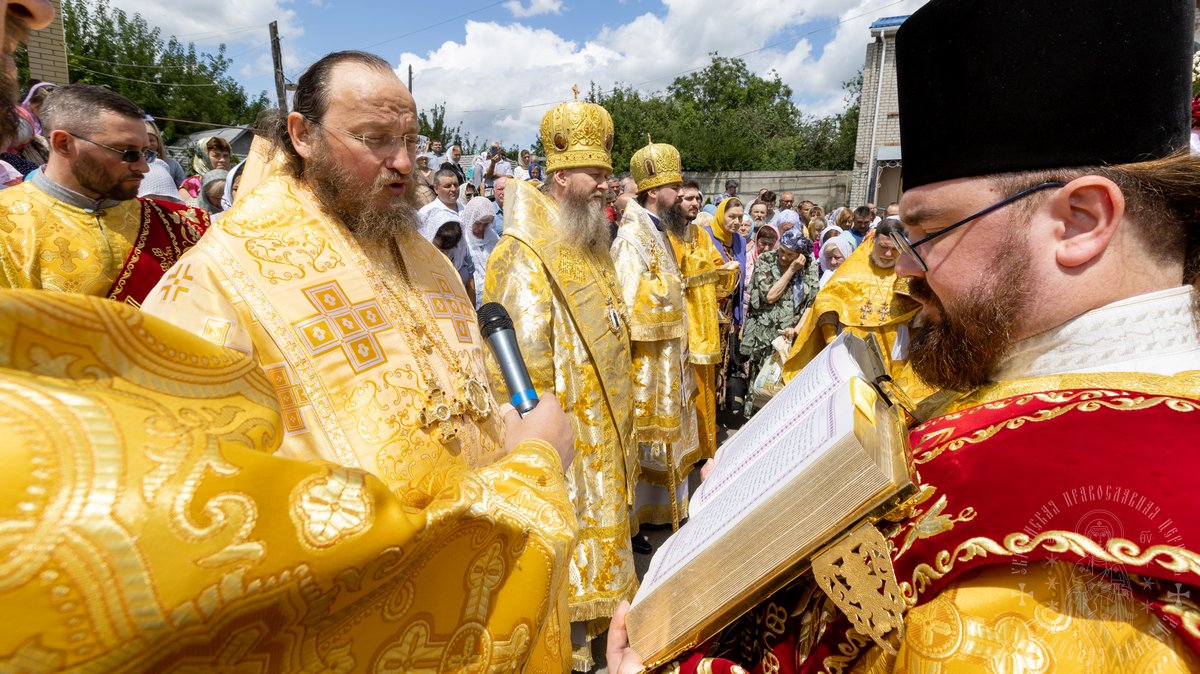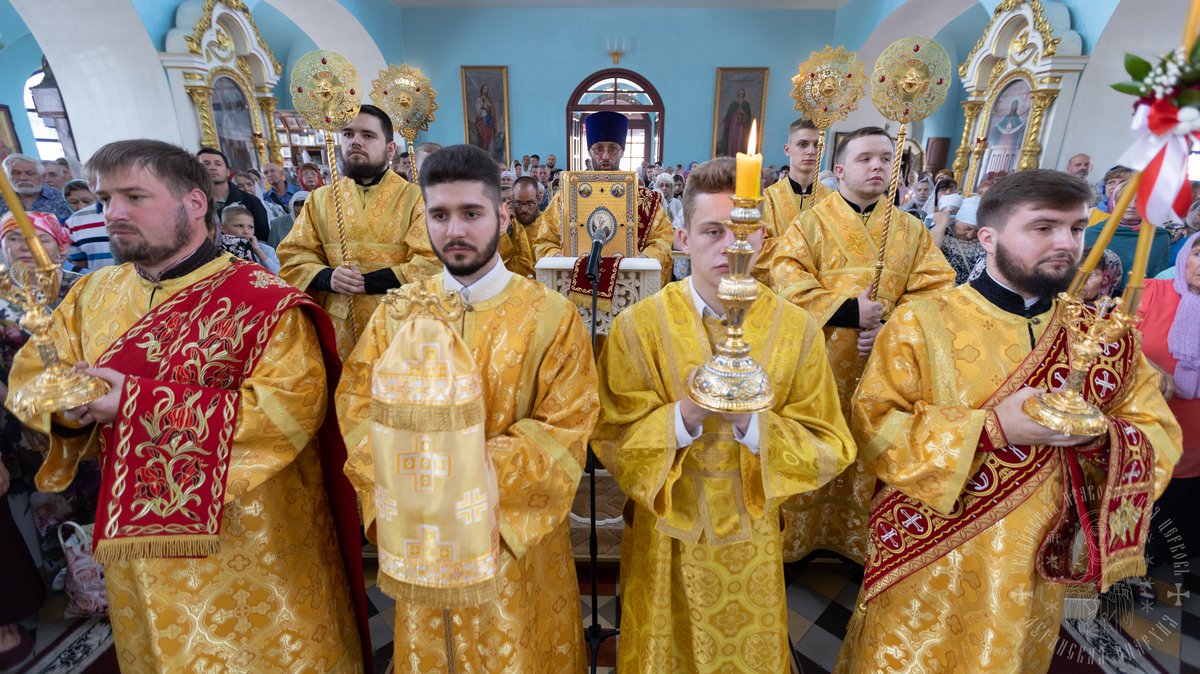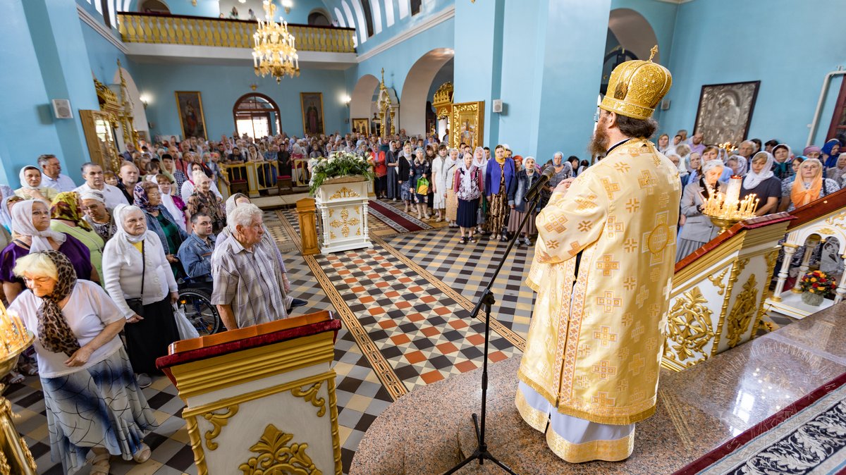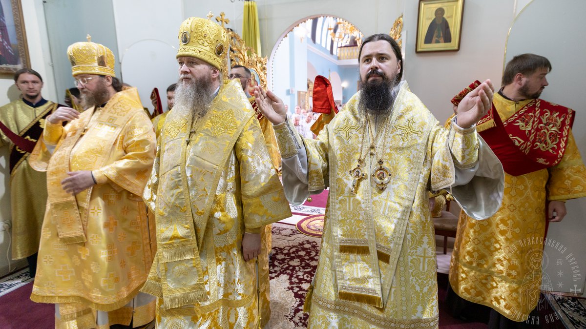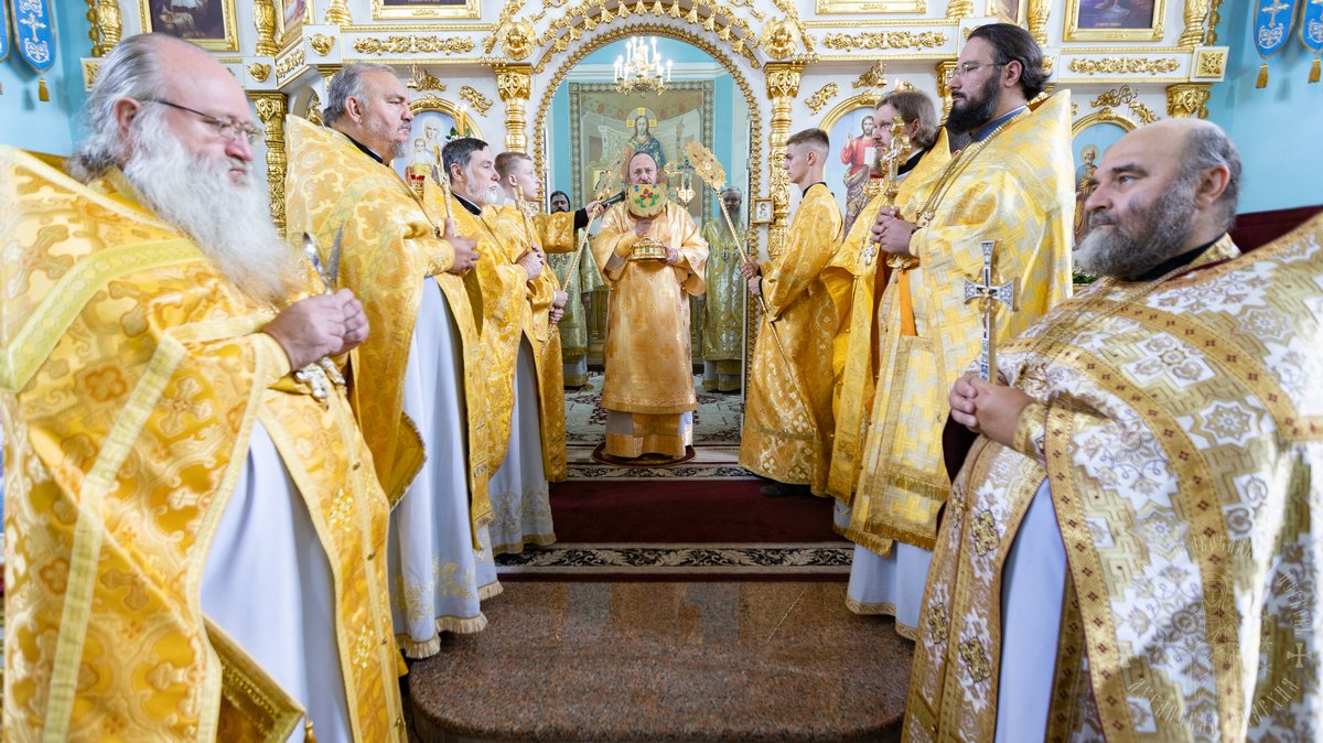 По окончании Божественной Литургии, Преосвященные владыки, духовенство и верующий народ совершили крестный ход вокруг храма, во время которого молились святым покровителям собора.