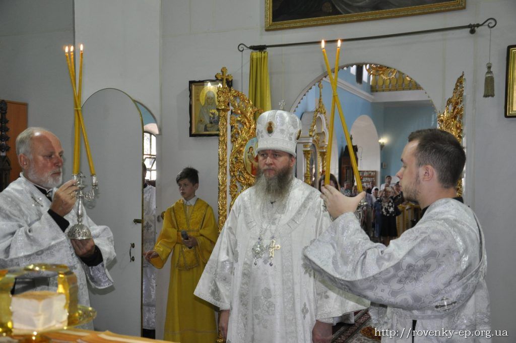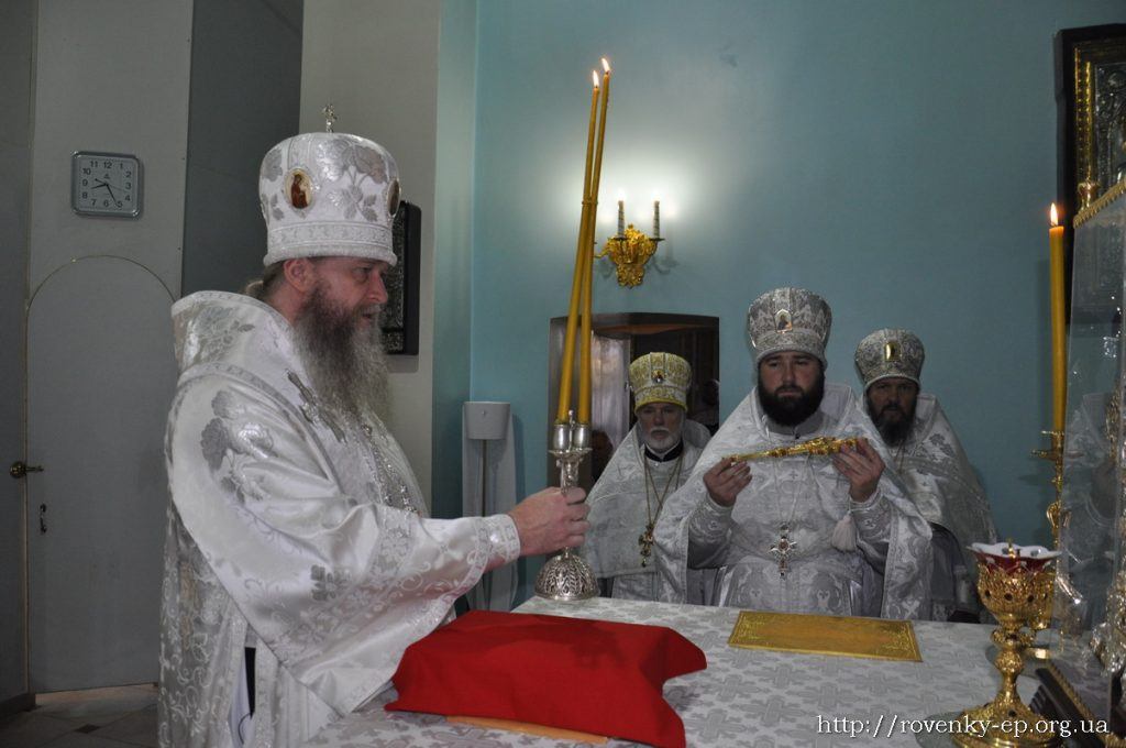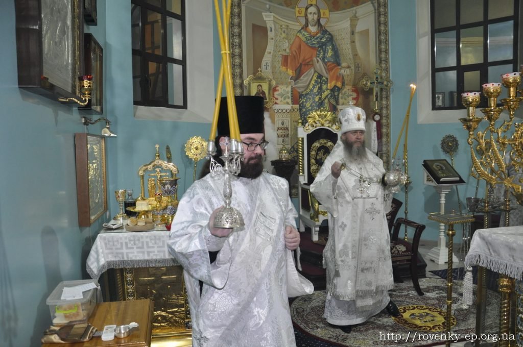 На богослужении Его Высокопреосвященству сослужили: секретарь Луганской епархии архимандрит Макарий (Любавцев), секретарь Ровеньковской епархии протоиерей Григорий Устименко, а также духовенство двух епархий.
