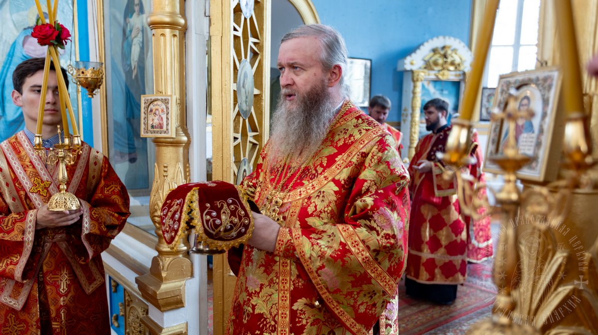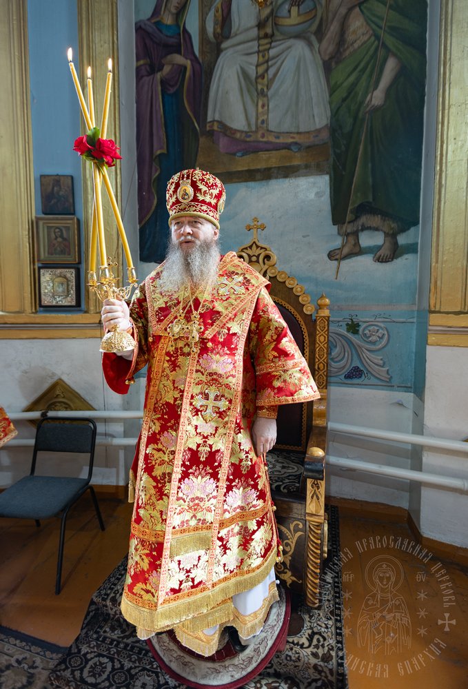 Затем, архипастырь поздравил духовенство и верующий народ с престольным днем, поскольку левый придел храма освящен в память ныне чествуемого святого, пожелал всем его молитвенного заступничества и преподал архипастырское благословение.