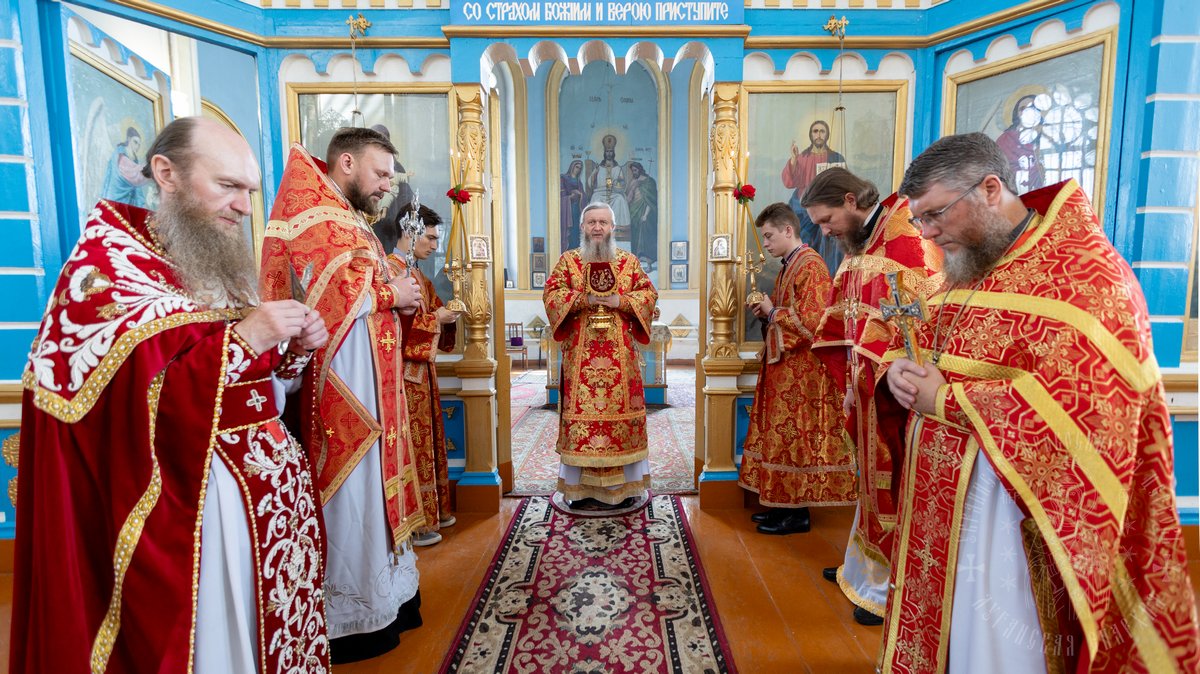 За Литургией Его Высокопреосвященству сослужил секретарь епархии прот. Андрей Зозуля, благочинный Новоайдарского округа прот. Евгений Рогозинский, настоятель храма иер. Василий Шинкарев, а также приглашенное духовенство.