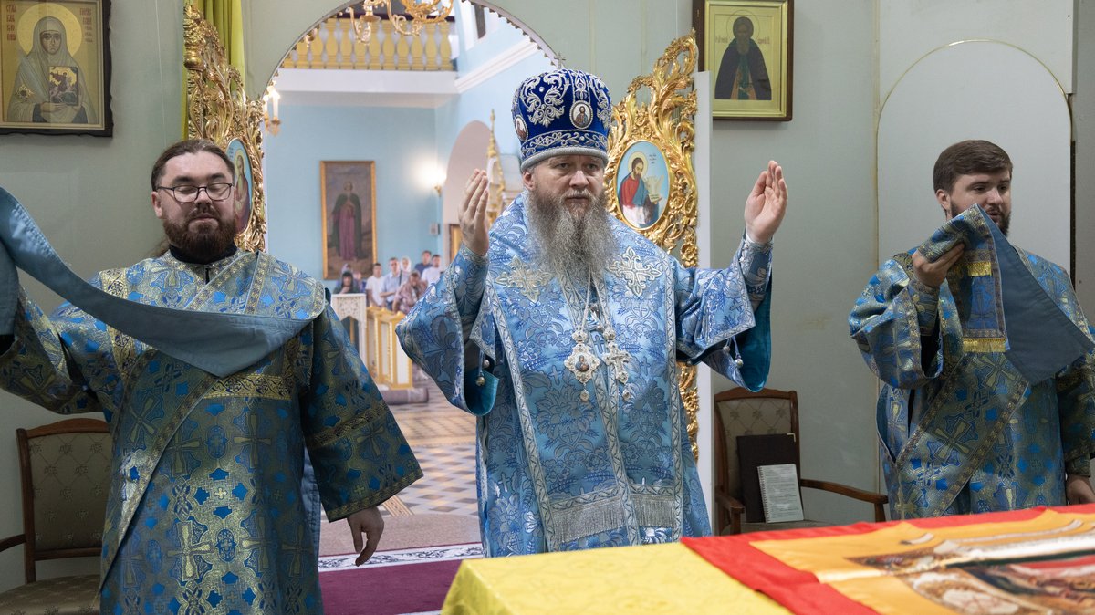 После сугубой ектении, владыка вознес молитву о мире и умножении любви среди народа Отечества нашего и молитву об исцелении болящих.