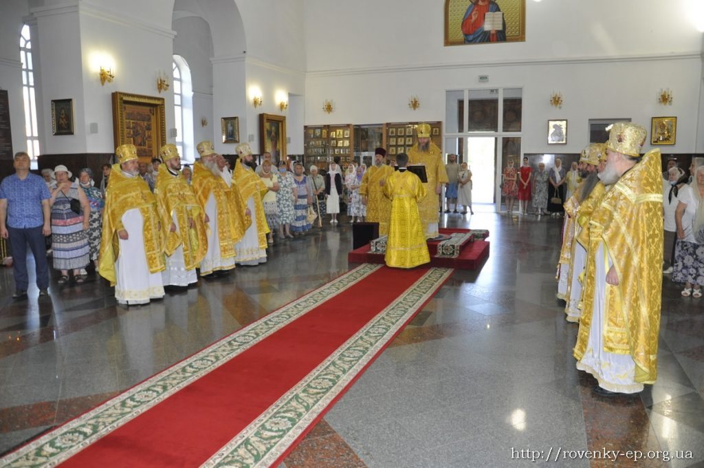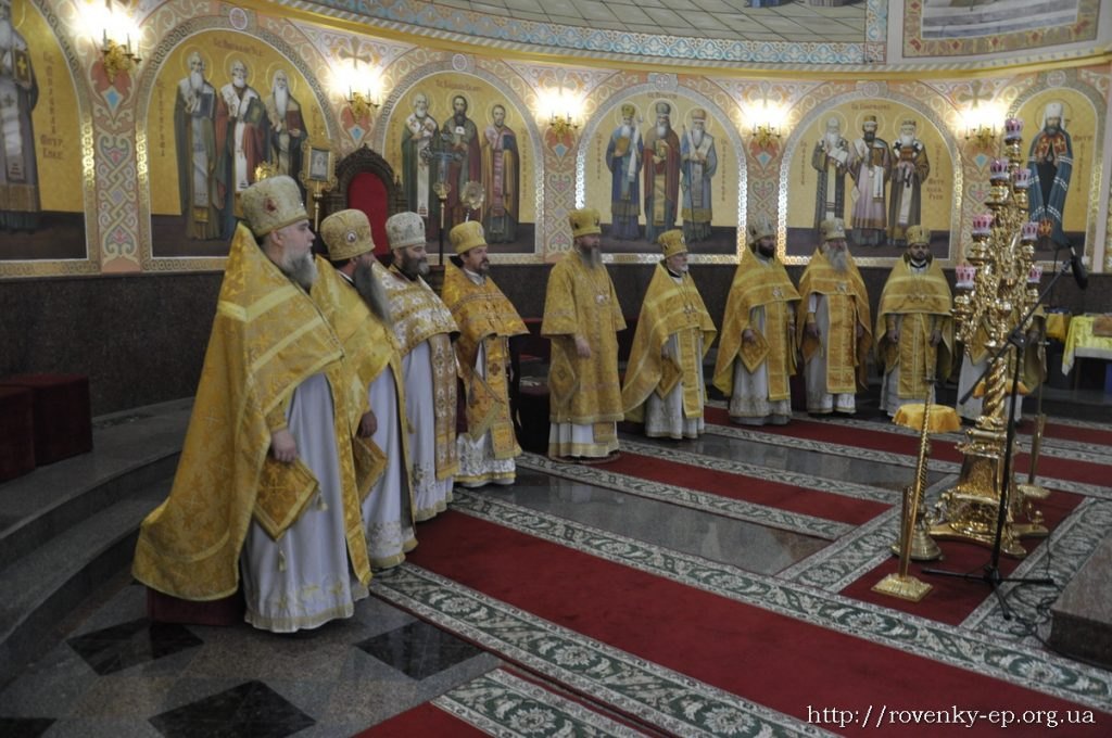 Архипастырю сослужили: настоятель собора протоиерей Владимир Конончук, секретарь Ровеньковской епархии протоиерей Григорий Устименко, секретарь Луганской епархии архимандрит Макарий (Любавцев), а также духовенство епархии.