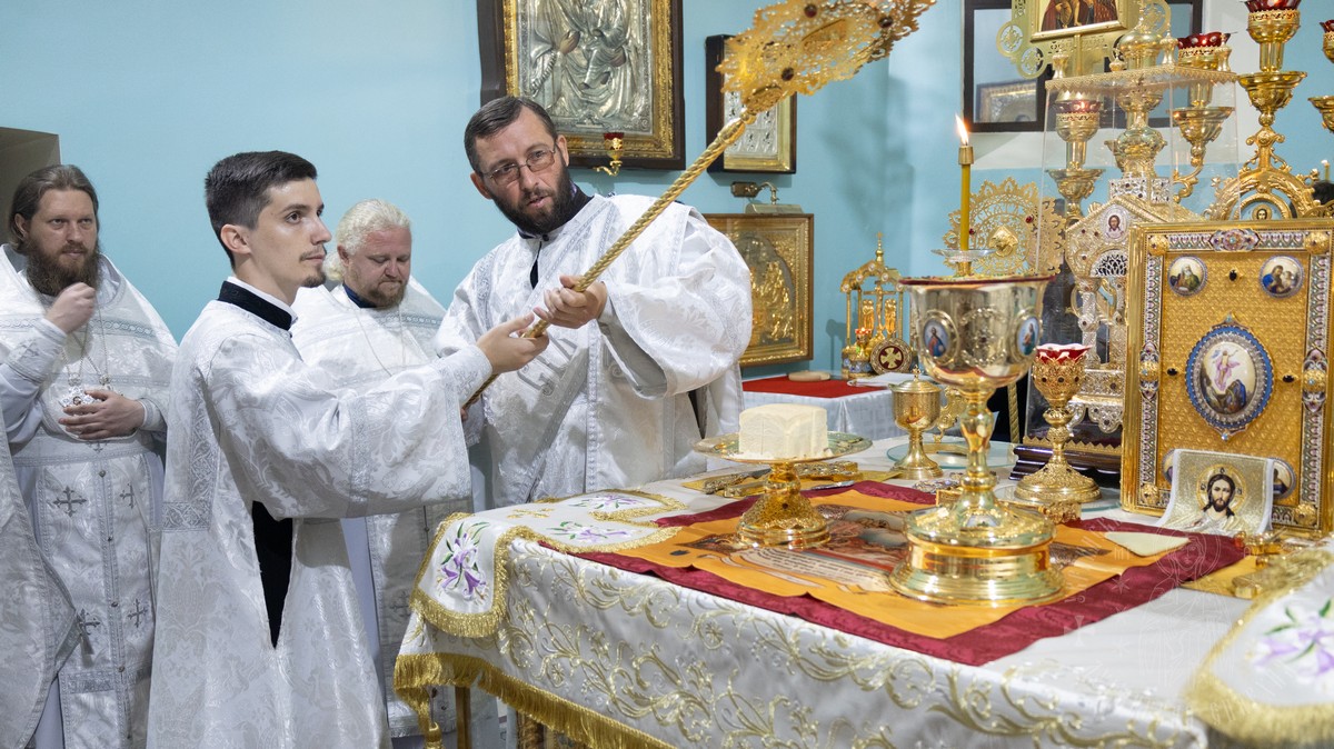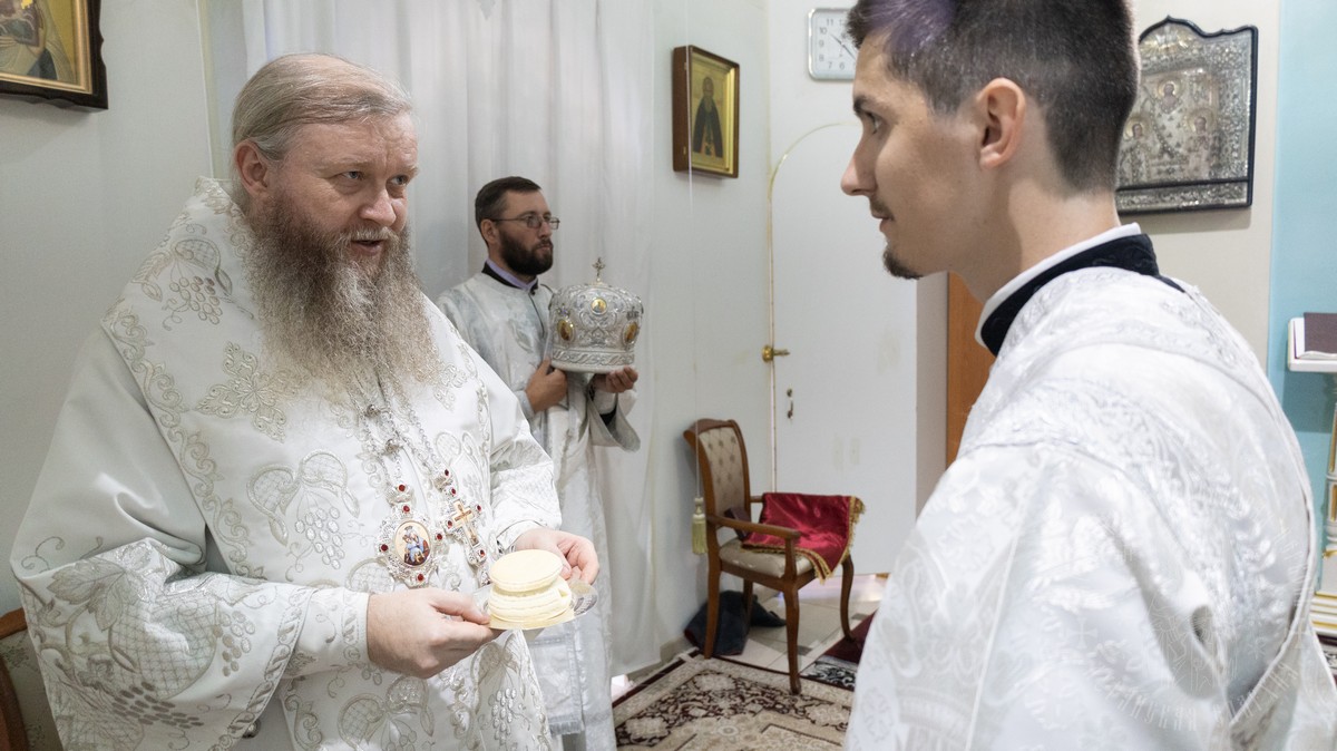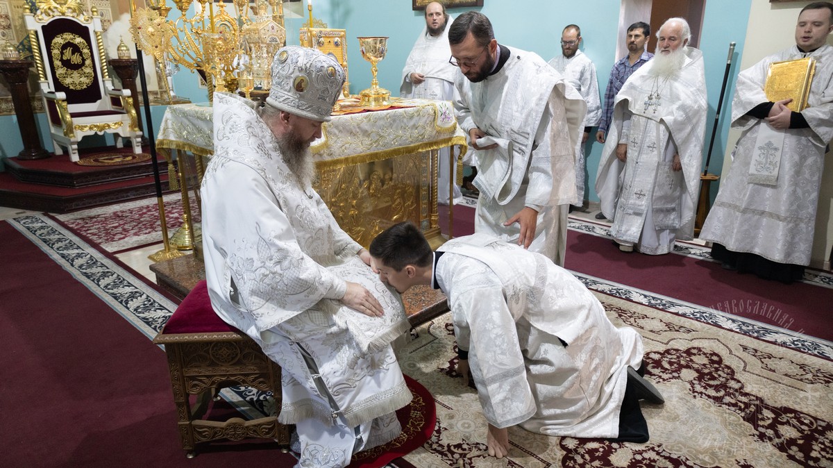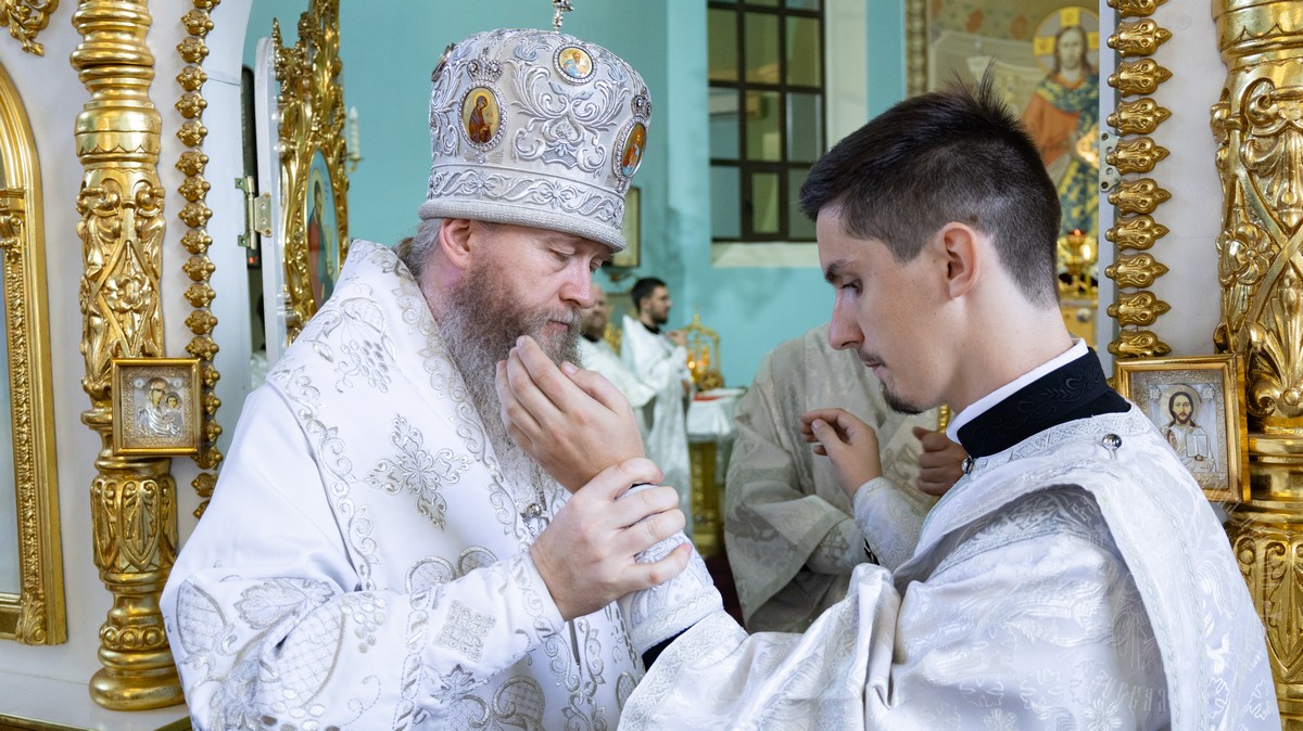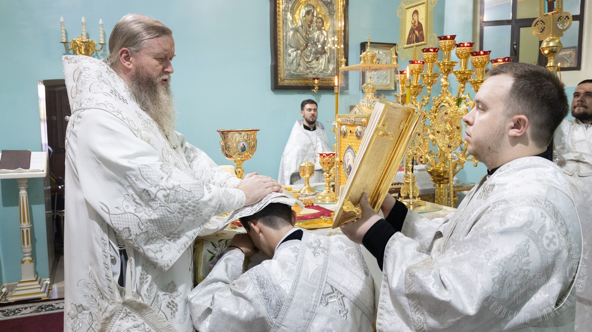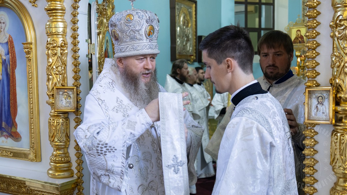 После Евхаристического канона владыка рукоположил ставленника Сафронова Николая Анатольевича в сан диакона.