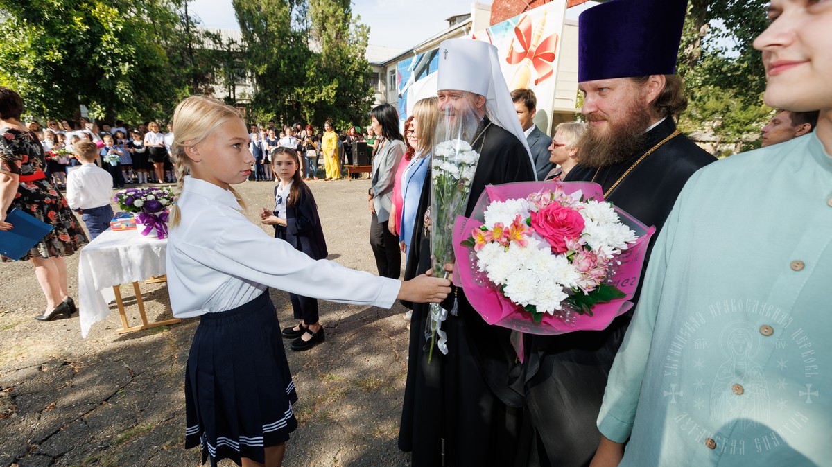 1 сентября, Высокопреосвященнейший Пантелеимон, митрополит Луганский и Алчевский, и секретарь епархии прот. Андрей Зозуля, приняли участие в ряде мероприятий посвященных Дню знаний, в образовательных учреждениях города Луганска.