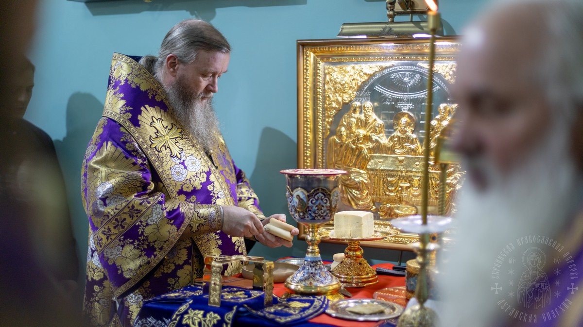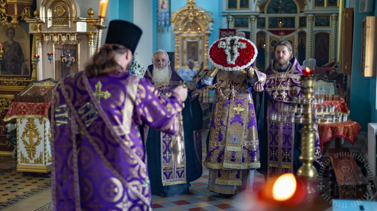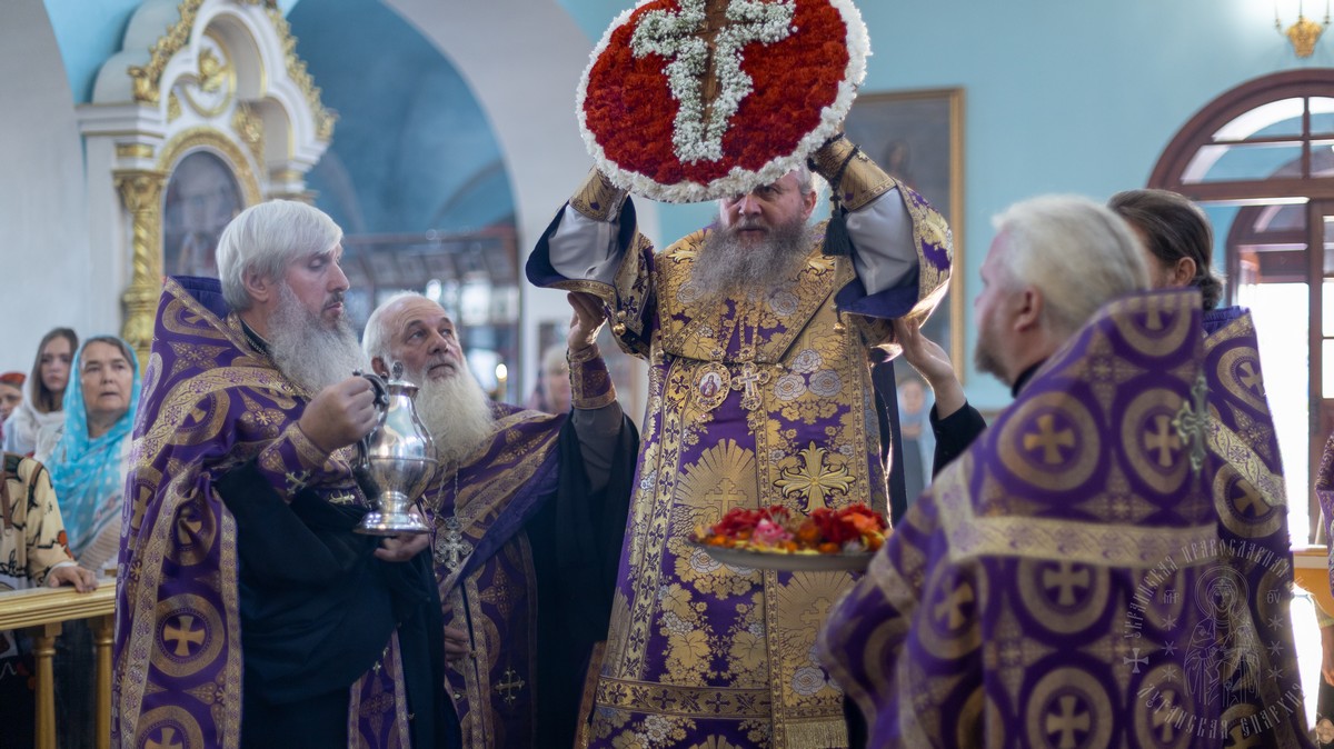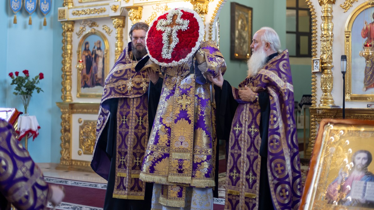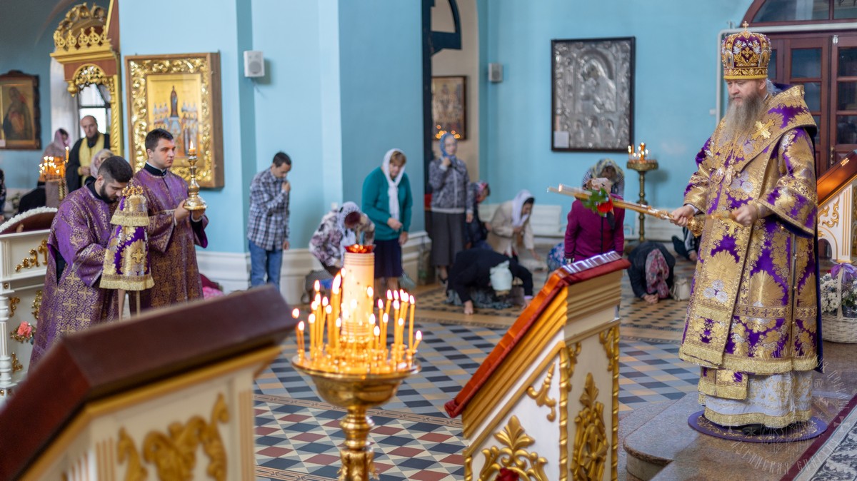 Накануне праздника дня архипастырь совершил в соборе Всенощное бдение с чином Воздвижения Креста Господня.