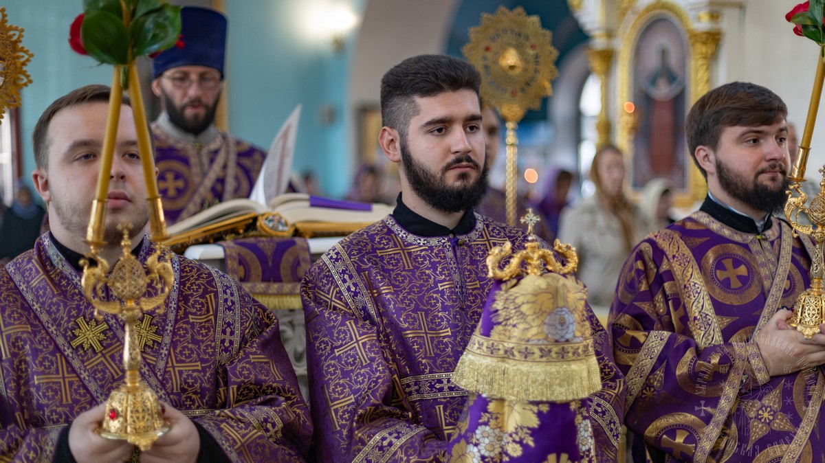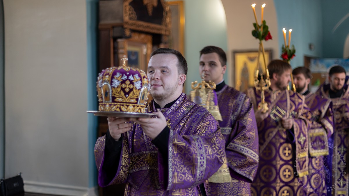 За Литургией Его Высокопреосвященству сослужил секретарь епархии прот. Андрей Зозуля, а также соборное духовенство.