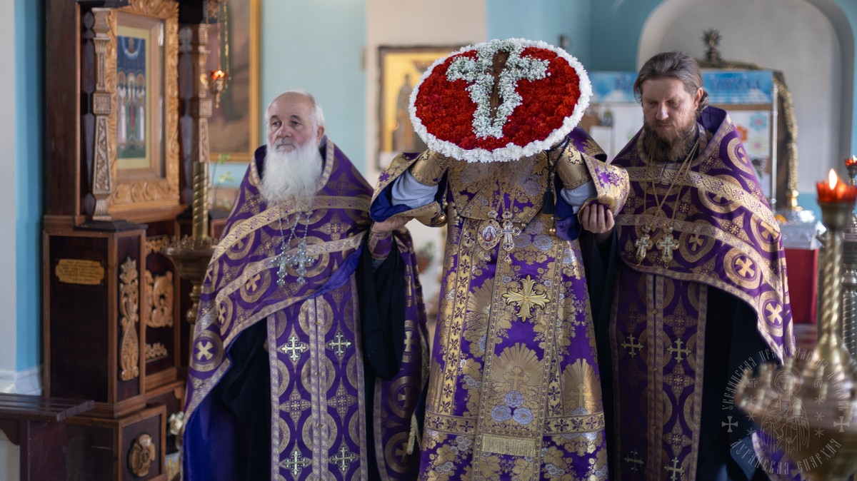 По окончании Литургии было совершено славление праздника и поклонение Кресту Господню.