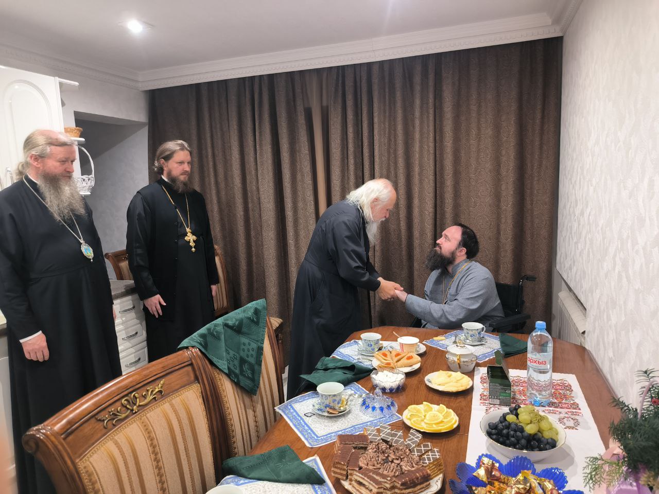 Оказывая гостеприимство, родители владыки Павла – Дмитрий Александрович и Ольга Владимировна пригласили гостей к столу на чаепитие.