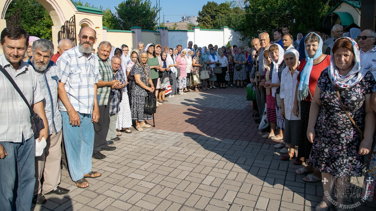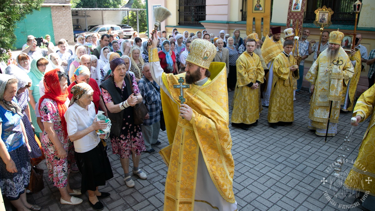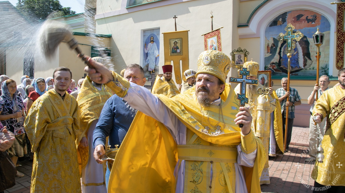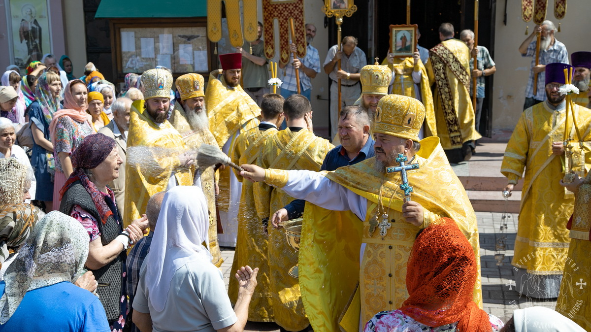 По окончании Литургии духовенство и верующий народ во главе с архипастырем, прошли крестным ходом вокруг собора, прославляя угодника Божия и окропляя молящихся святой водой.