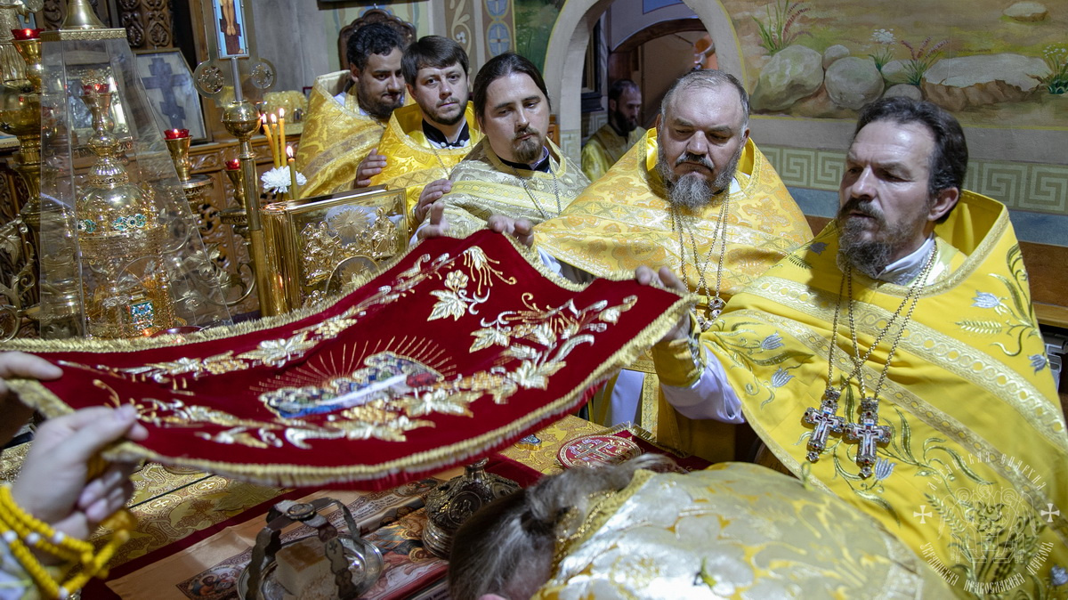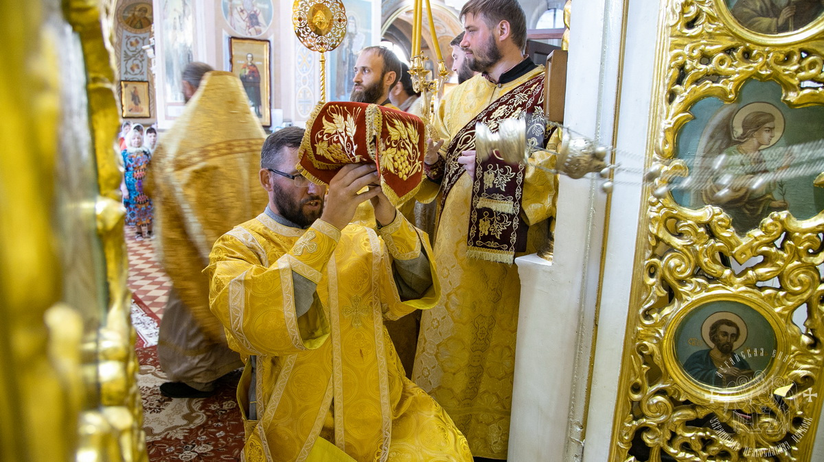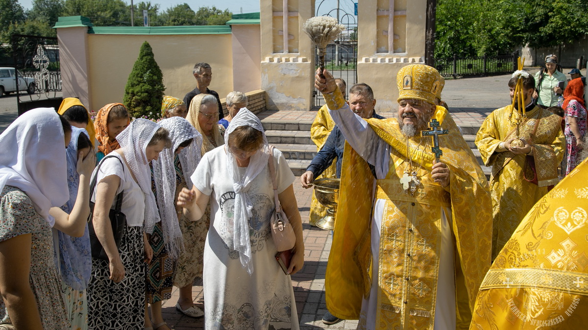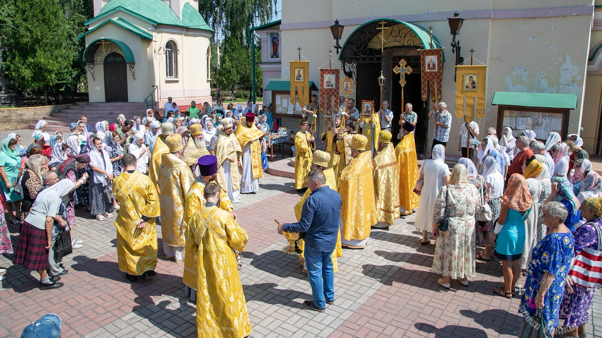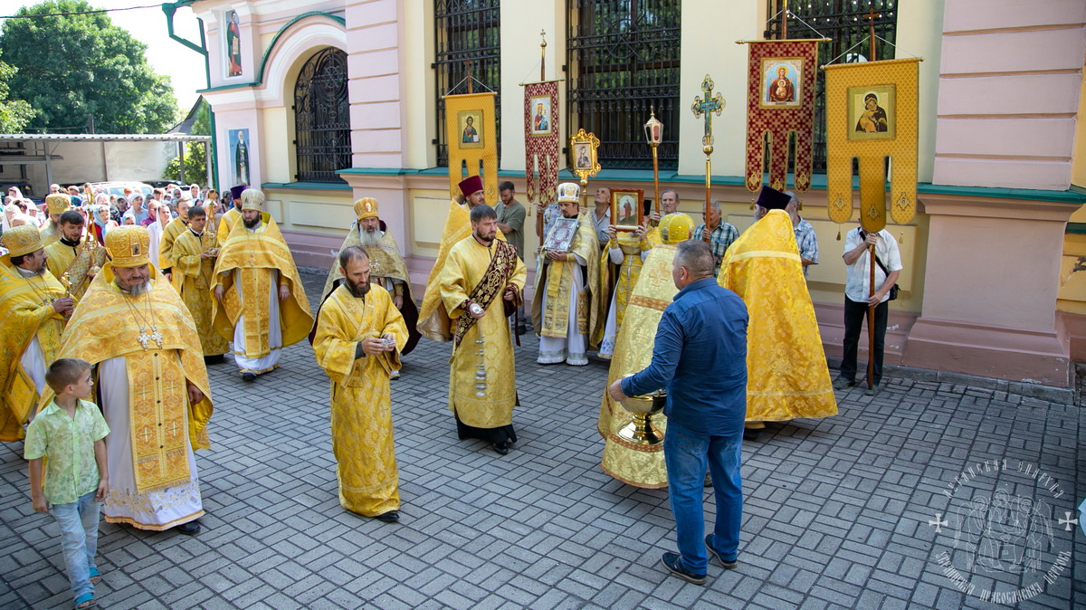 По окончании Литургии духовенство и верующий народ во главе с архипастырем, прошли крестным ходом вокруг собора, прославляя угодника Божия и окропляя молящихся святой водой.