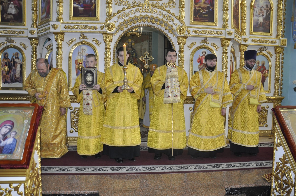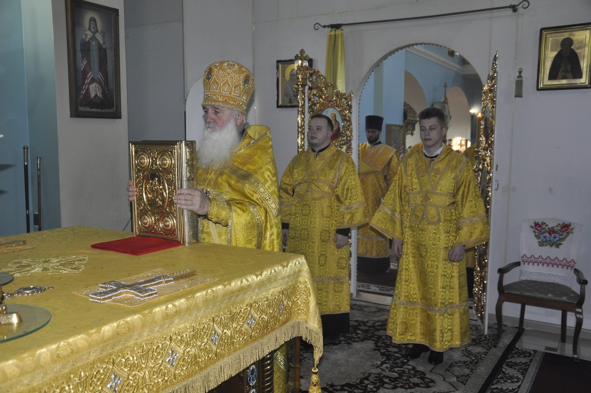 После сугубой ектении, владыка вознес молитву о мире и умножении любви среди народа Отечества нашего и молитву об исцелении болящих.