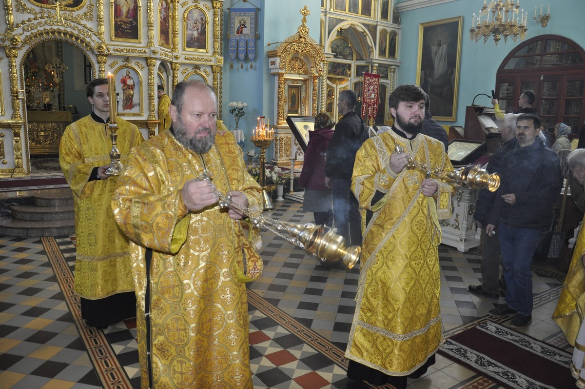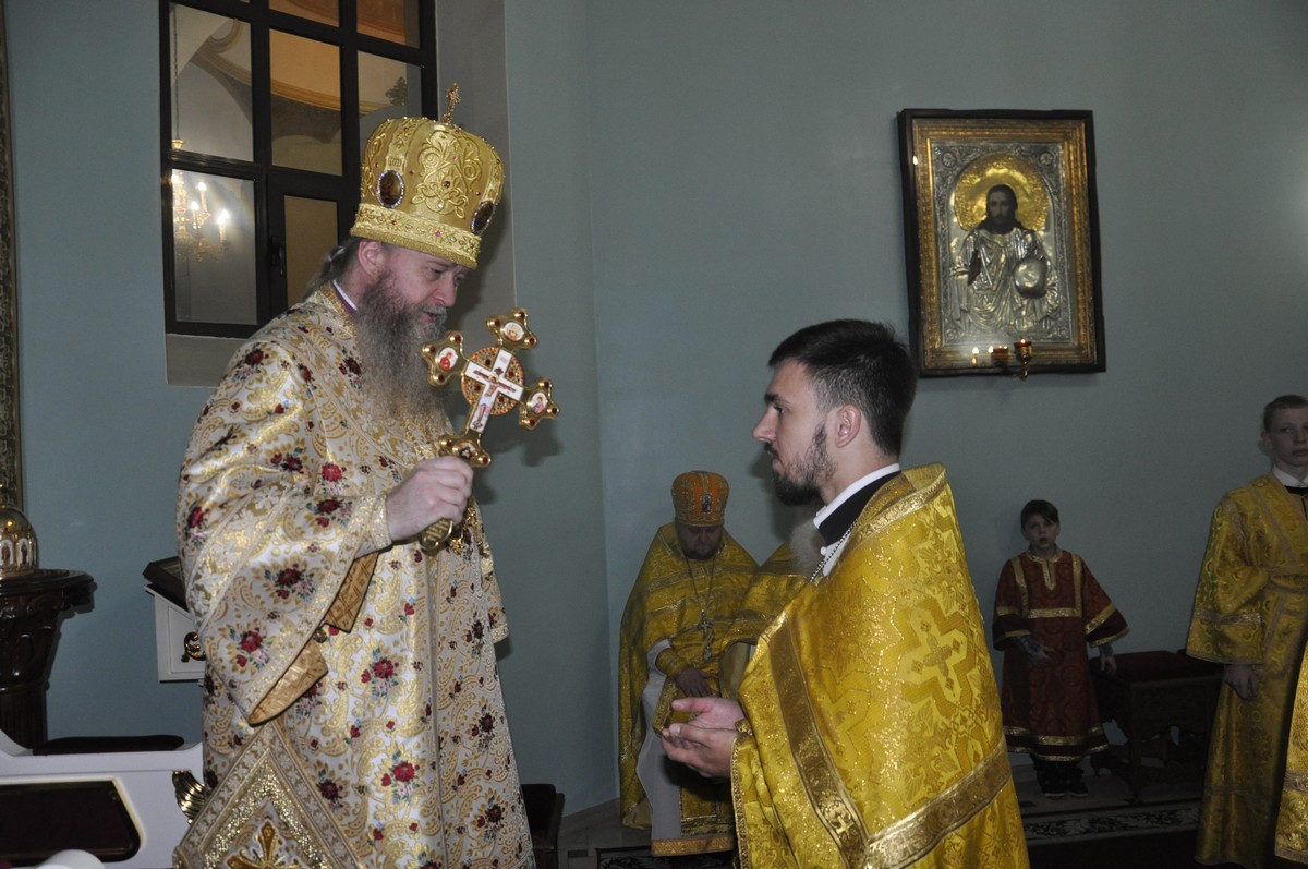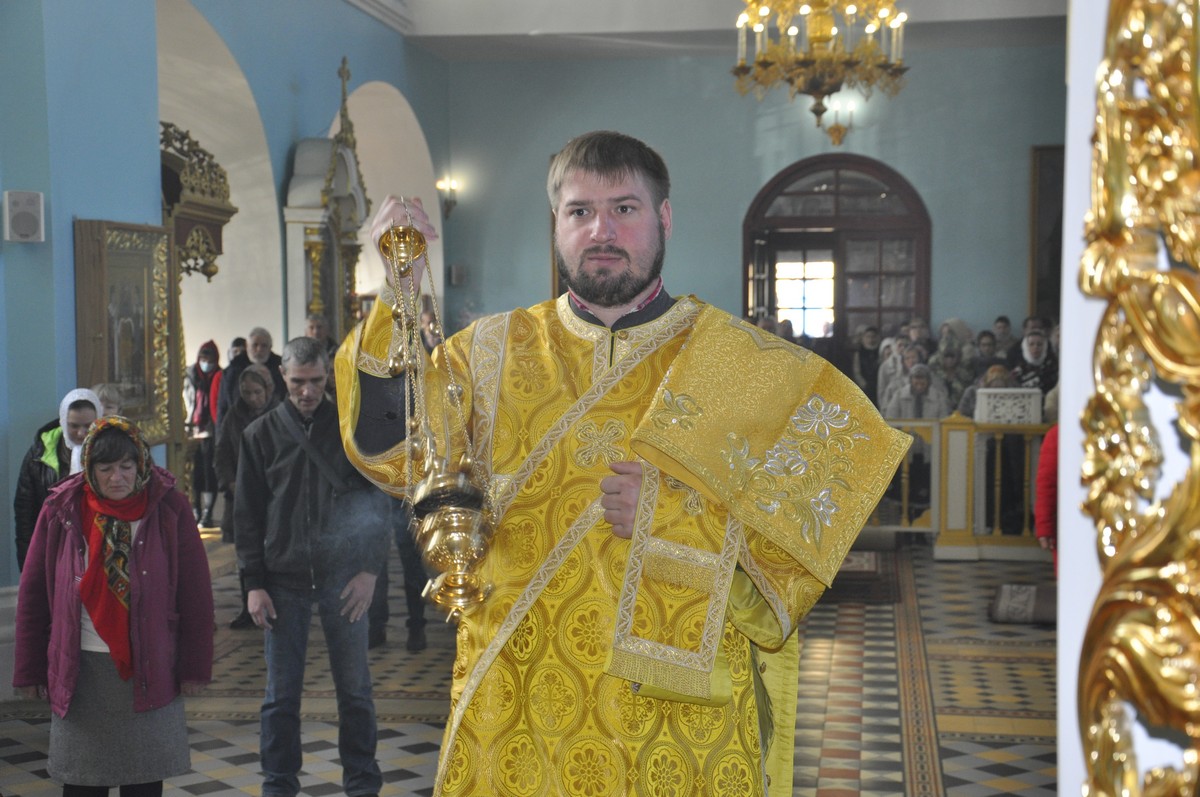 Проповедь после Евангельского чтения произнес клирик кафедрального собора иер. Димитрий Еремин.