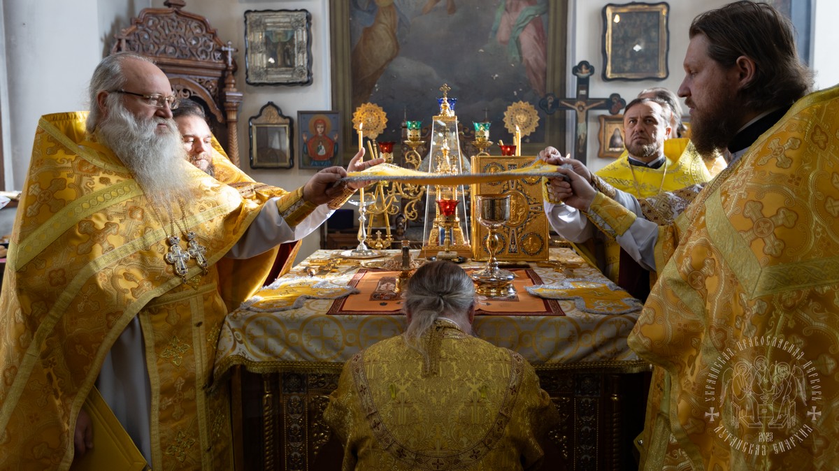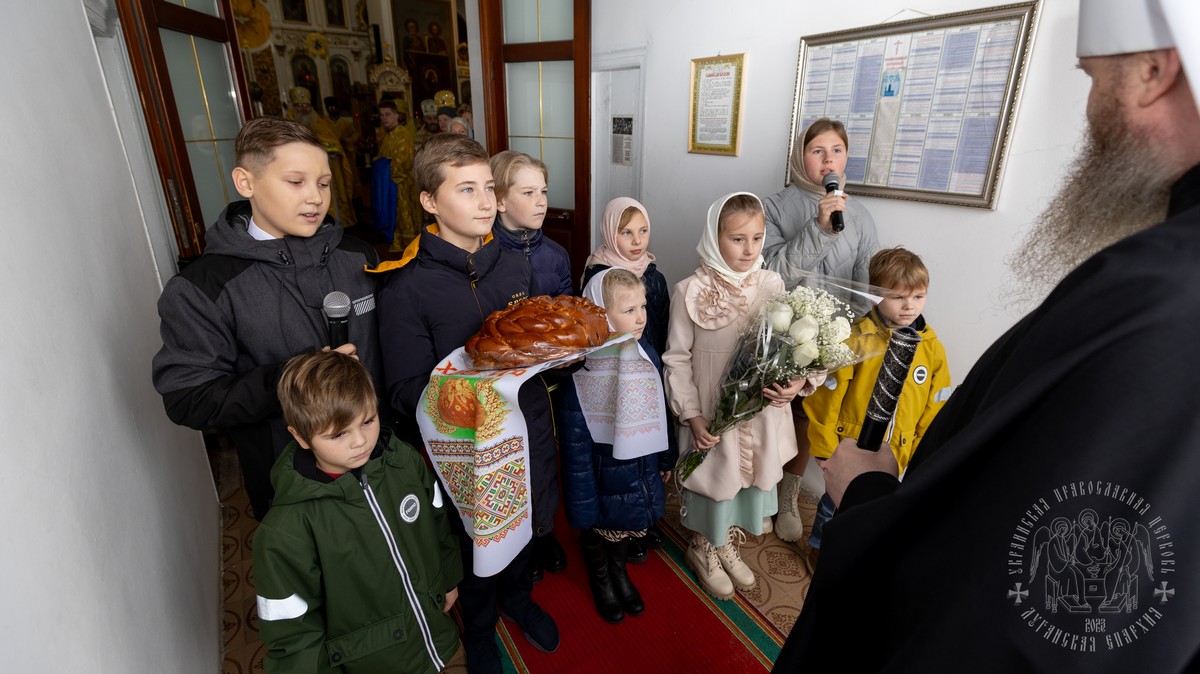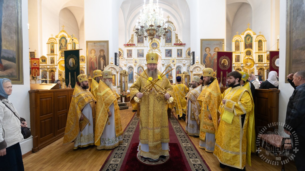 За Литургией Его Высокопреосвященству сослужил секретарь епархии прот. Андрей Зозуля, благочинный Александровского округа и настоятель храма прот. Иаков Лобов, благочинный второго Луганского округа архим. Тихон (Ильгов), а также приглашенное духовенство.