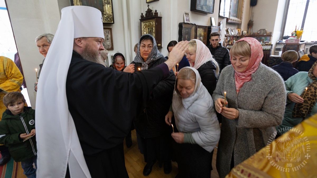 После сугубой ектении владыка вознес молитву о мире на Святой Земле, молитву о мире на святой Руси, и молитву об исцелении болящих.