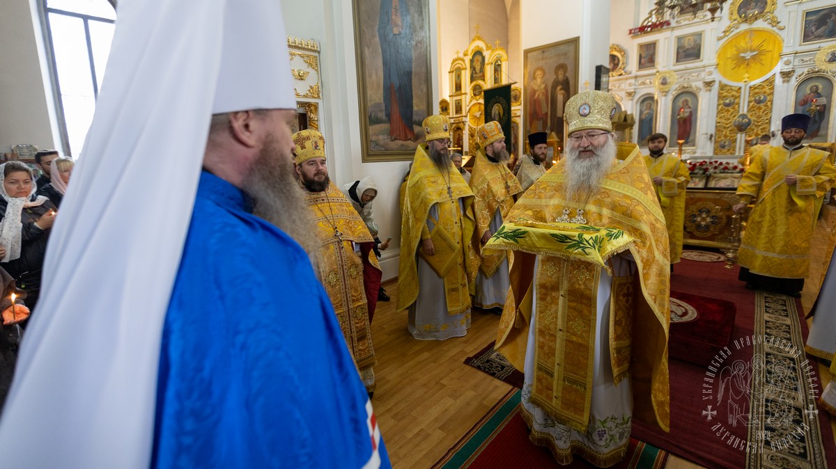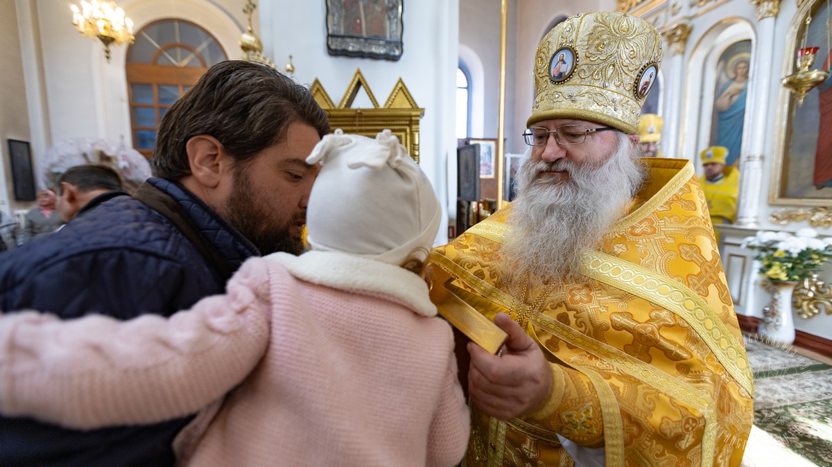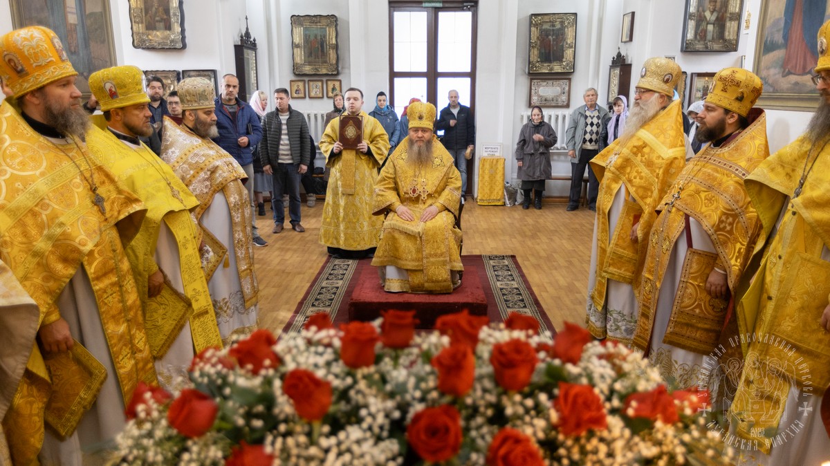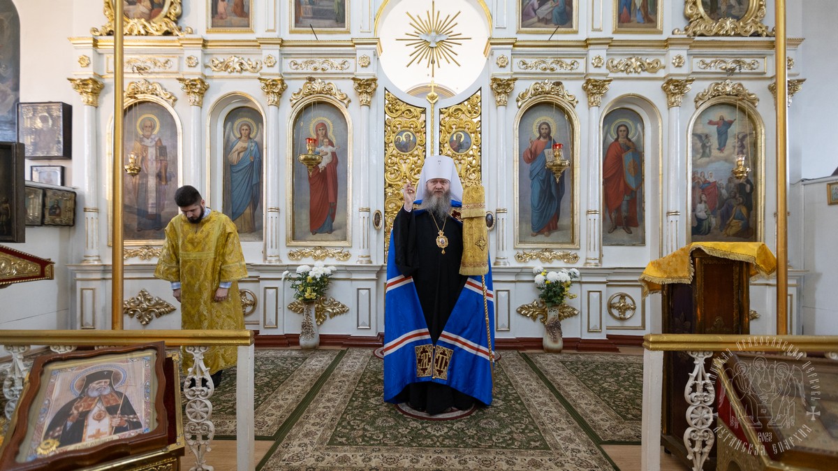 По завершении богослужения митрополит Пантелеимон поздравил паству с воскресным днем, а настоятеля храма – прот. Иакова Лобова с днем Небесного покровителя и недавно отмеченным днем рождения.