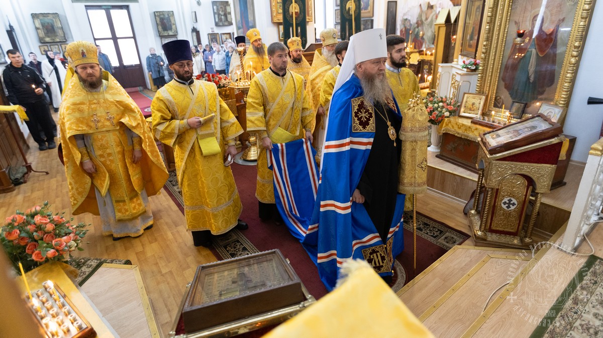 Выразив слова благопожеланий от имени сослужившего духовенства и верующего народа, владыка преподал имениннику святую просфору, а протодиакон провозгласил многолетие.