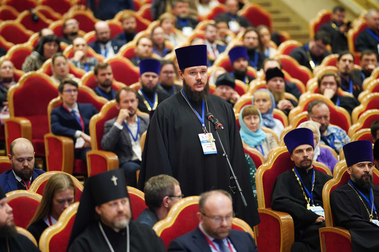 — панельную дискуссию «Церковь и общество перед лицом глобального противостояния». В рамках дискуссии спикерами была подчеркнута актуальность этой темы в свете существующей международной обстановки и отмечена необходимость создания новых площадок для взаимодействия. По мнению ведущих, в настоящее время необходимо действовать с позиции «мягкой силы» через изменение системы образования и продвижение российских ценностей. Также было высказано убеждение в том, что «союз государства, общества и Церкви необходим в нынешних условиях»;