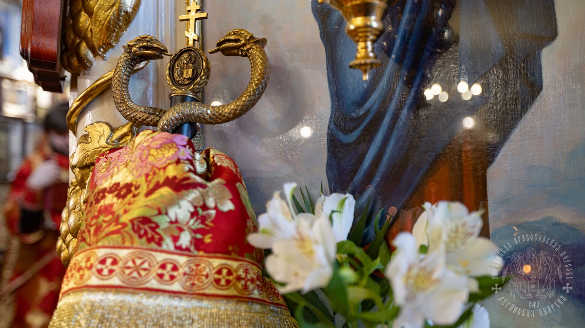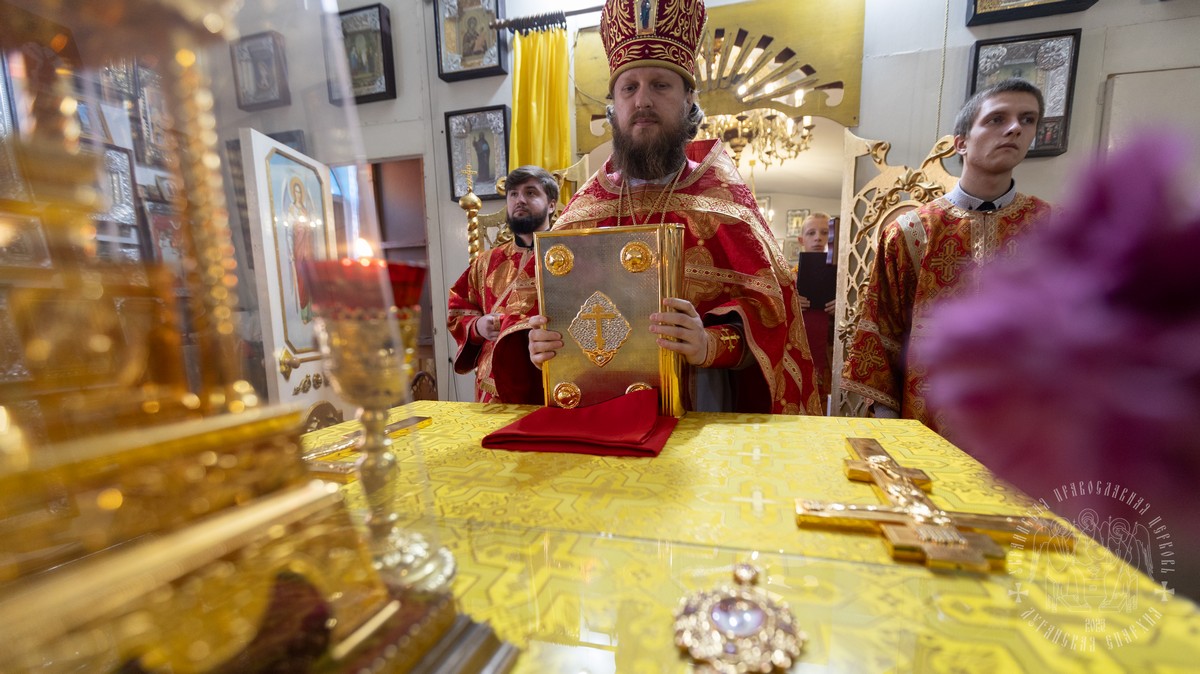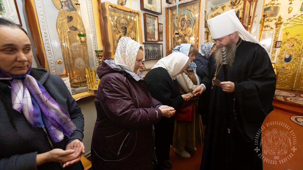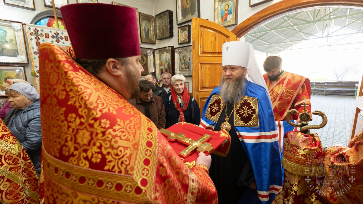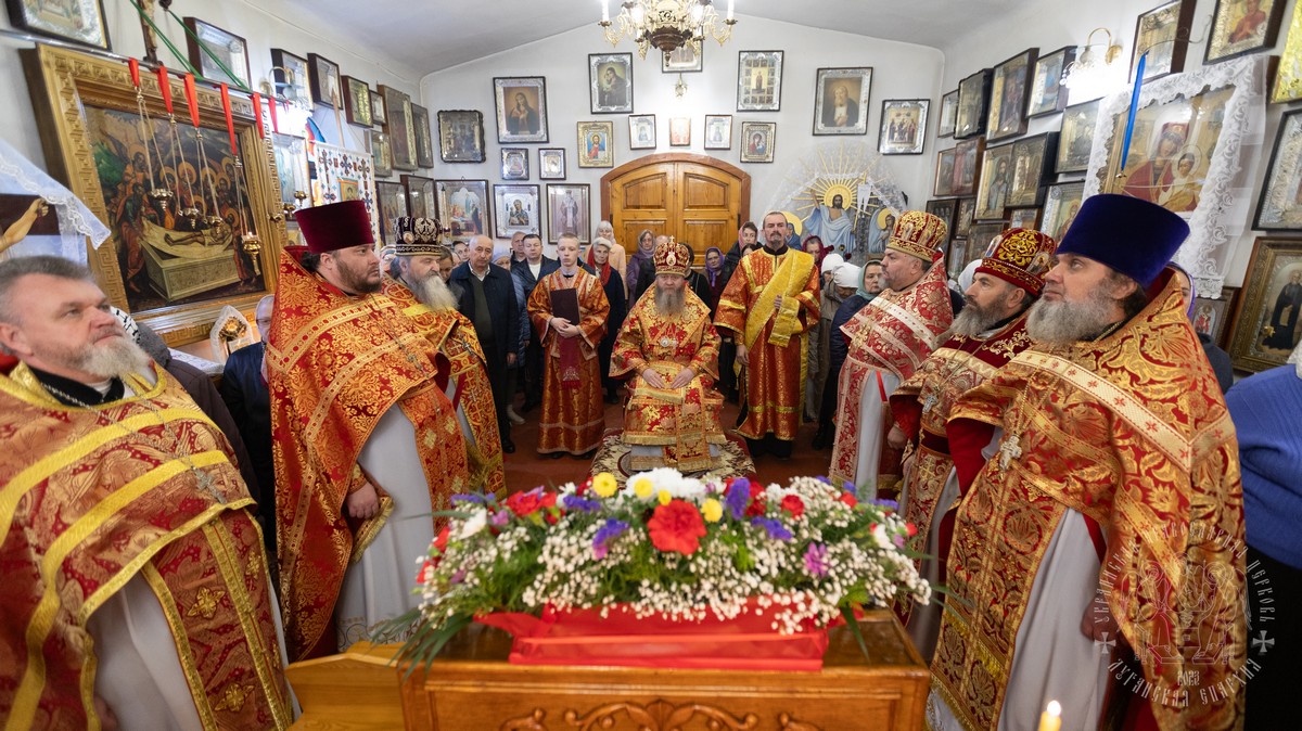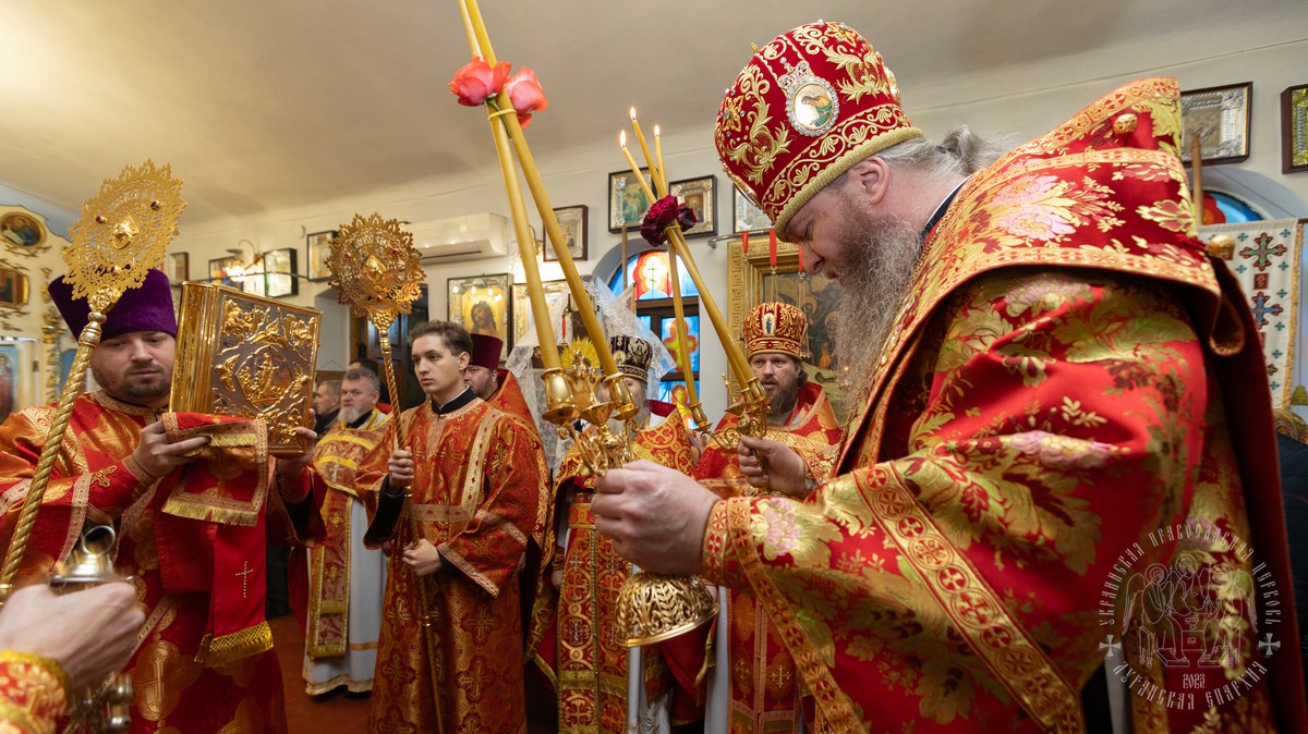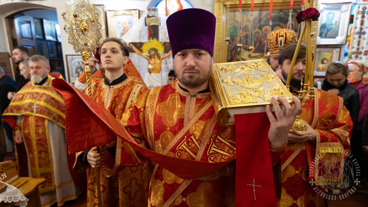 За Литургией Его Высокопреосвященству сослужил секретарь епархии прот. Андрей Зозуля, благочинный Алчевского округа прот. Александр Устименко, благочинный Перевальского округа и настоятель храма прот. Роман Колодка, а также духовенство благочиния.
