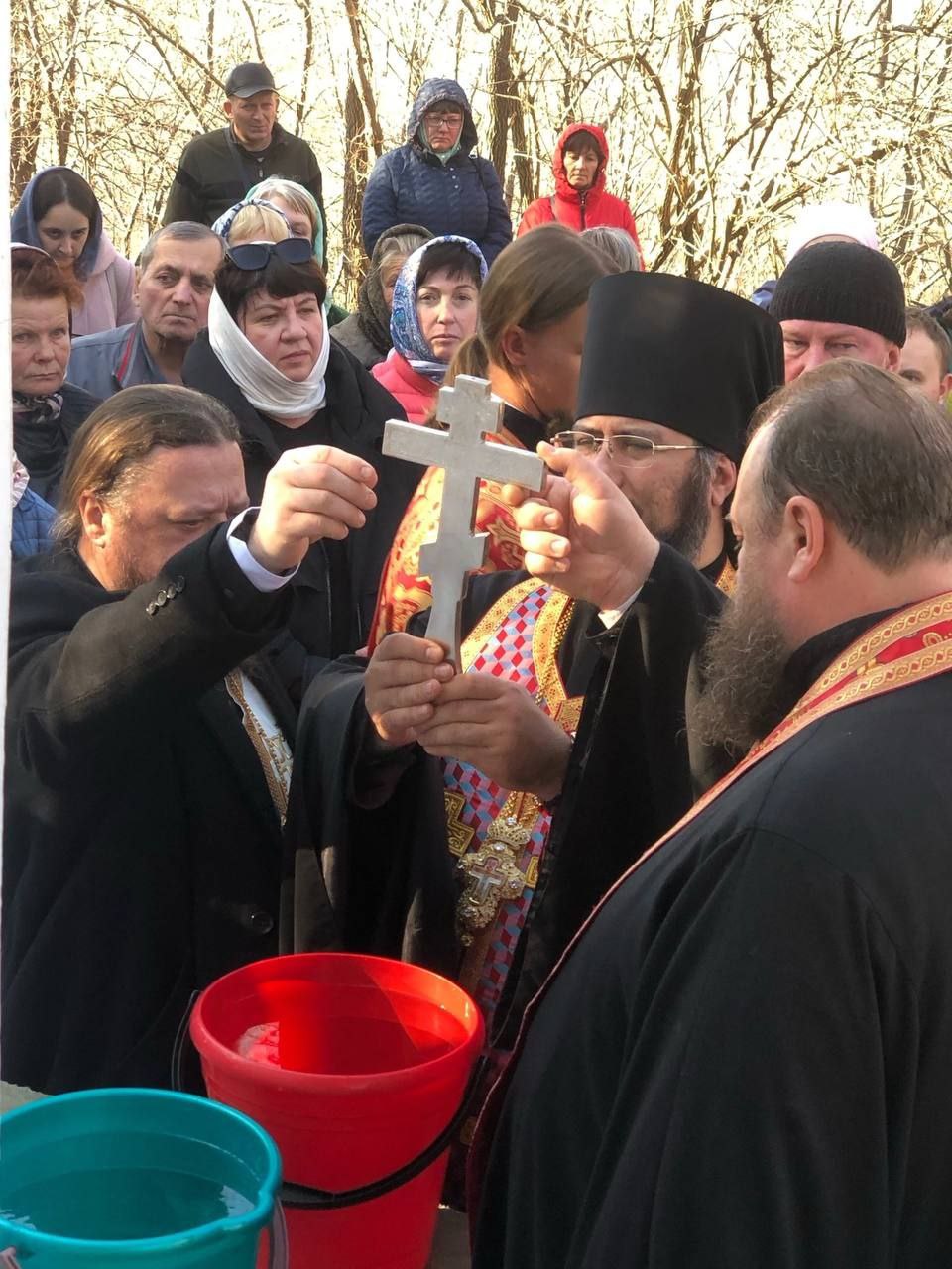 По традиции после Божественной литургии духовенство с верующими прошли крестным ходом к целебному источнику святой Параскевы, у которого был совершен водосвятный молебен.