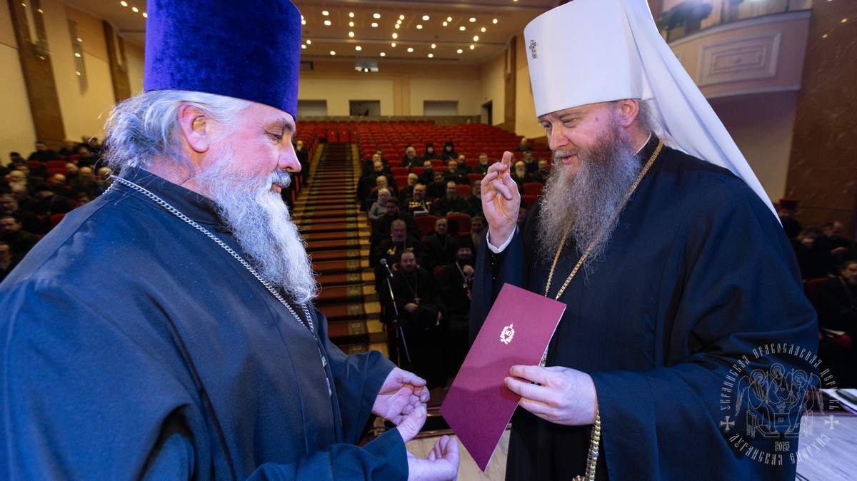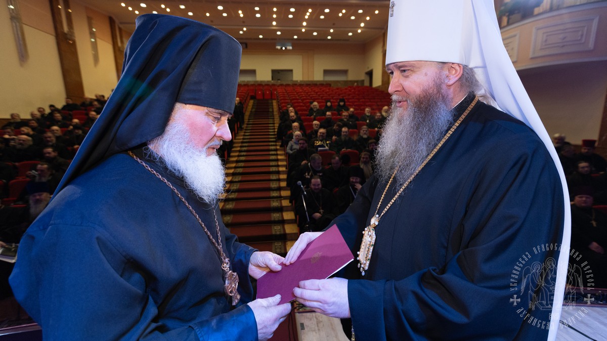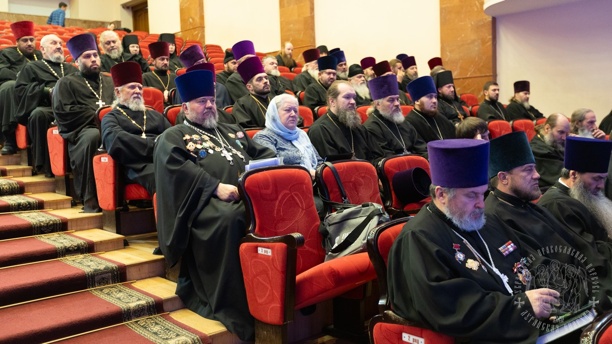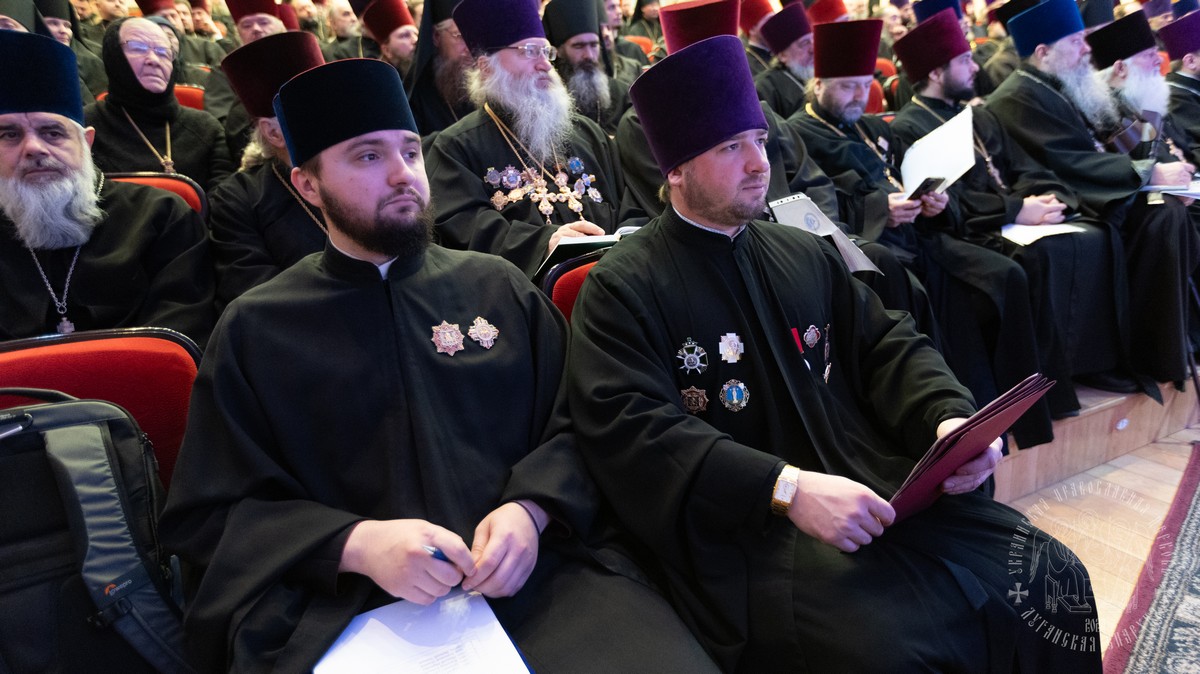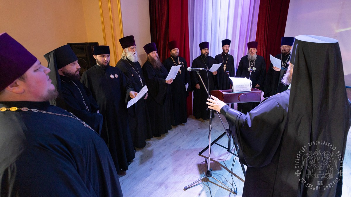 В собрании принимали участие: секретарь епархии протоиерей Андрей Зозуля, руководители епархиальных отделов, отцы благочинные, игумены и игуменьи монастырей, духовенство и монашествующие Луганской епархии.