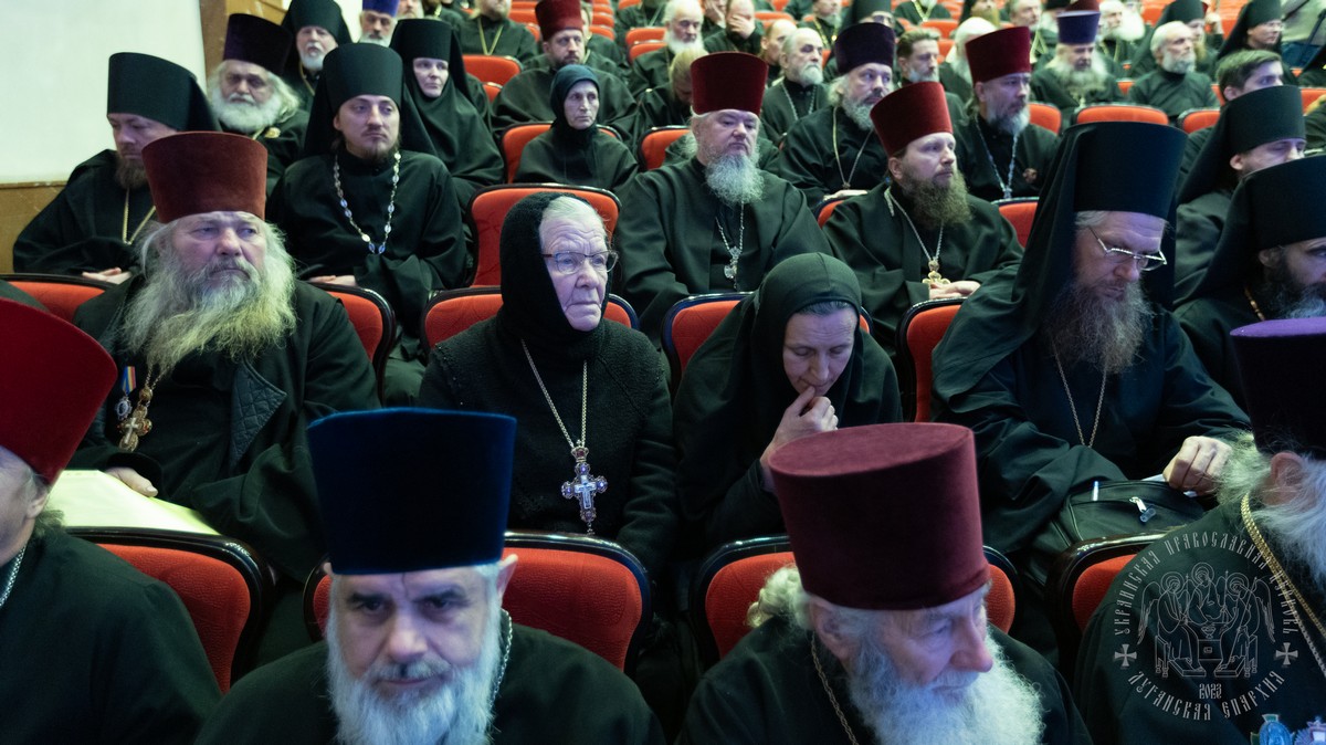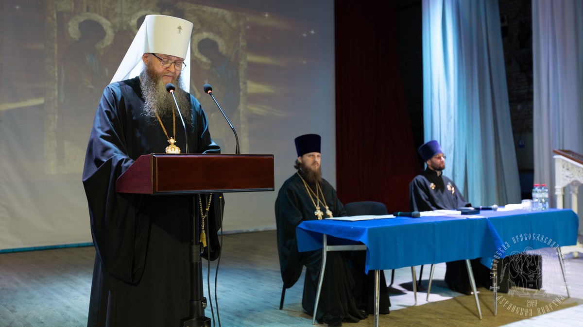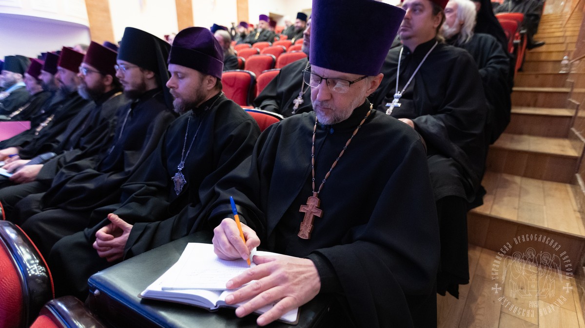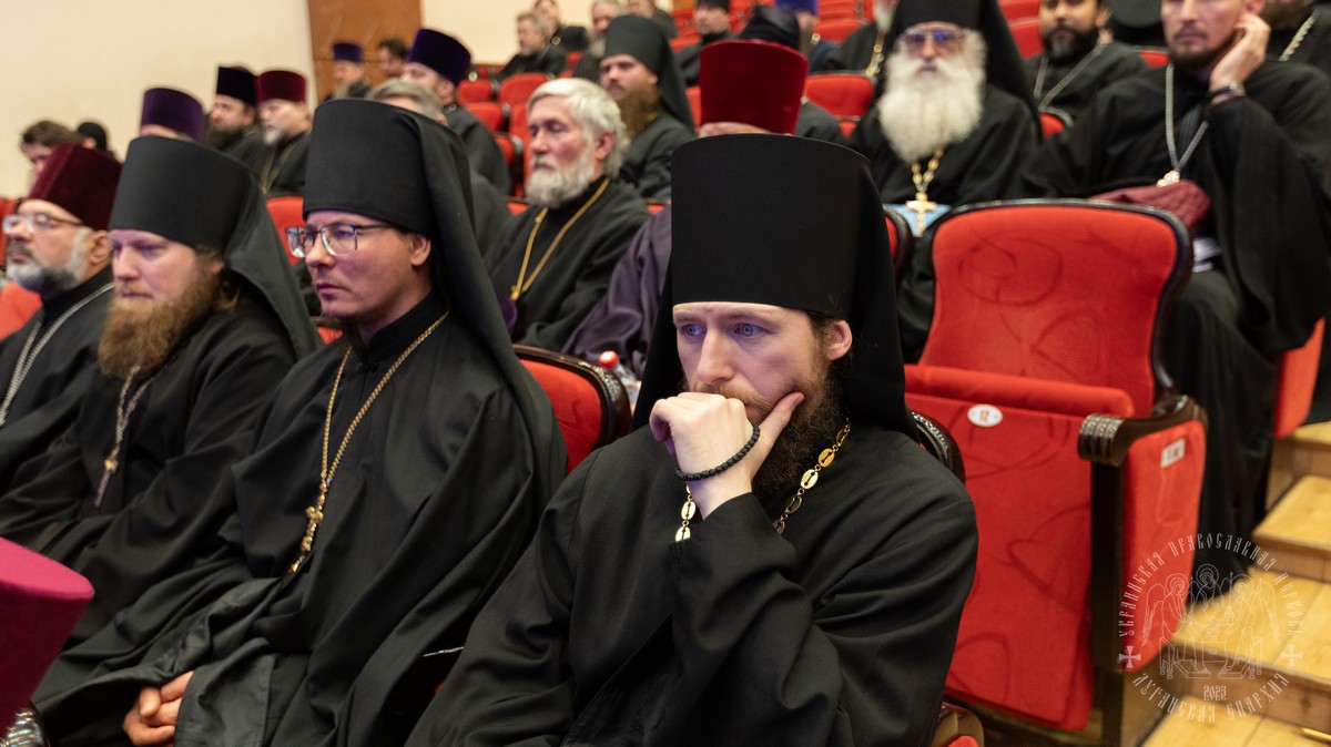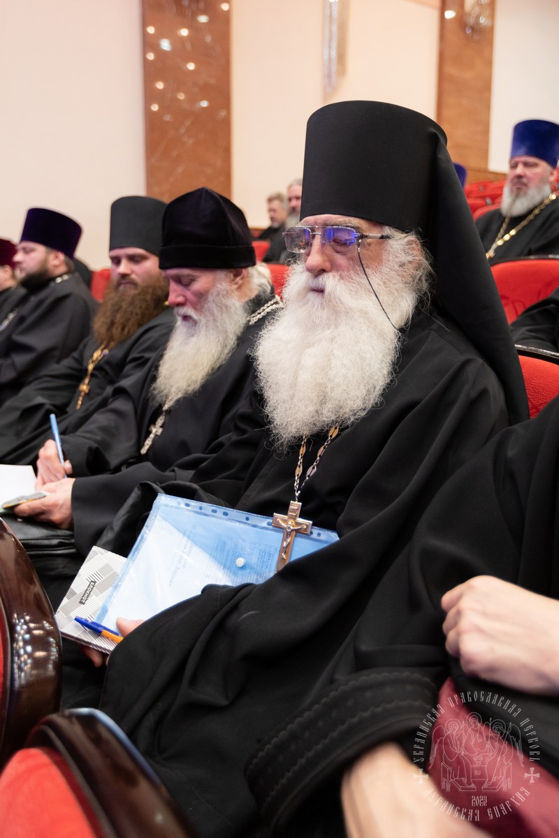 В собрании принимали участие: секретарь епархии протоиерей Андрей Зозуля, руководители епархиальных отделов, отцы благочинные, игумены и игуменьи монастырей, духовенство и монашествующие Луганской епархии.