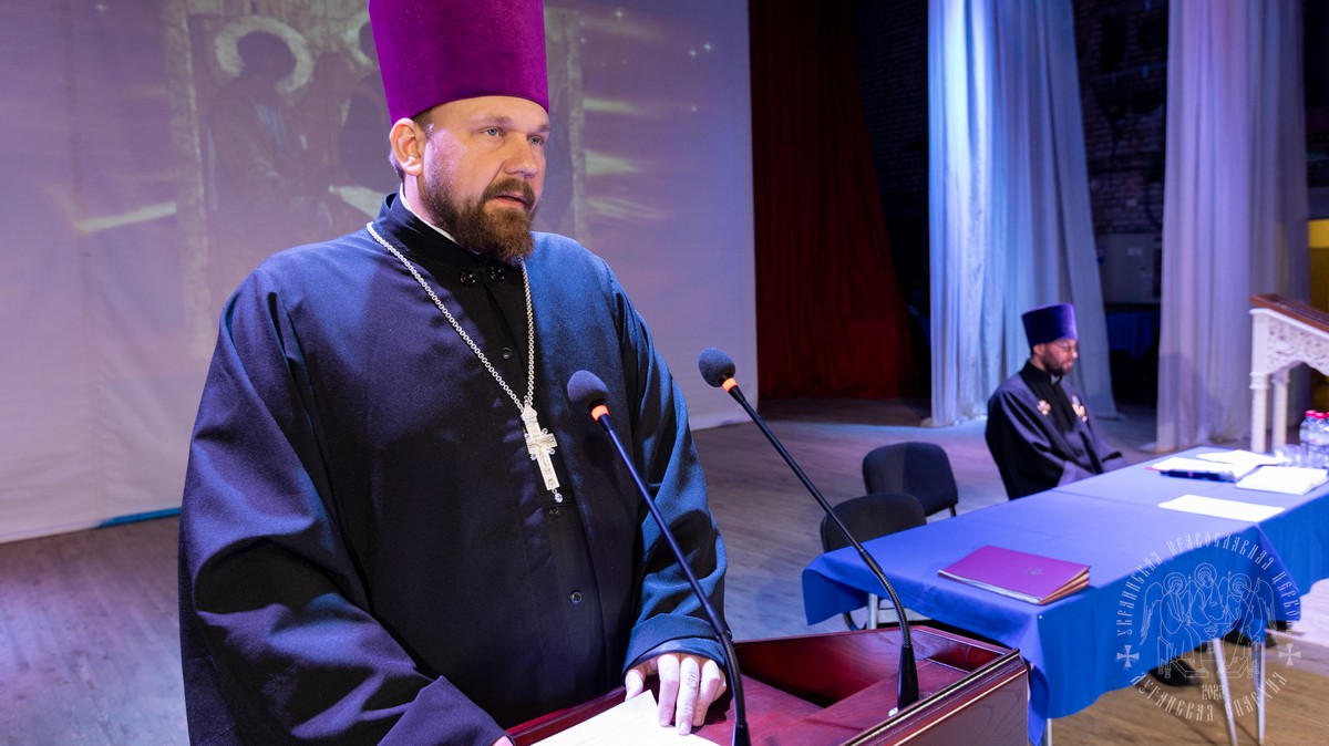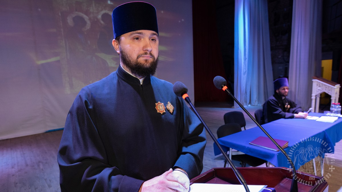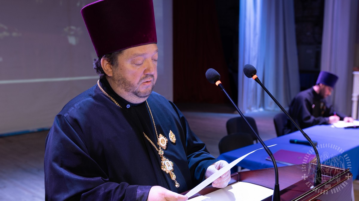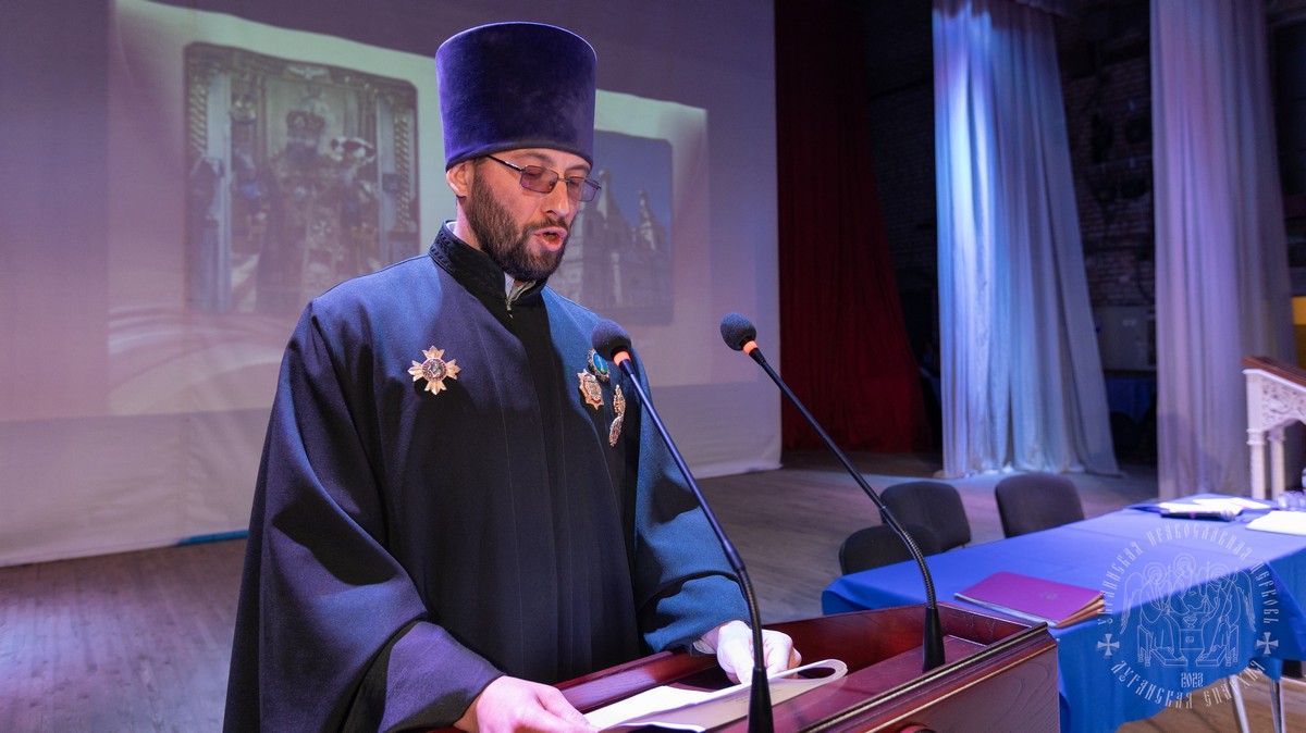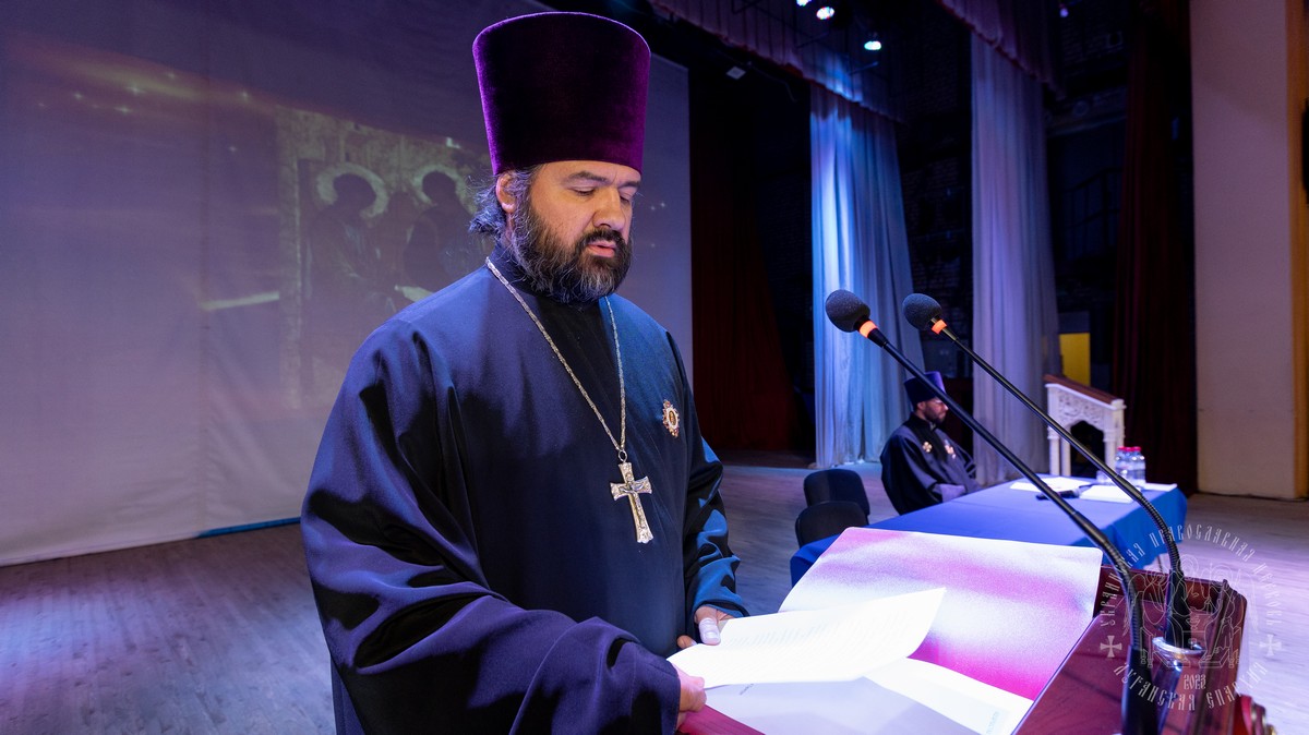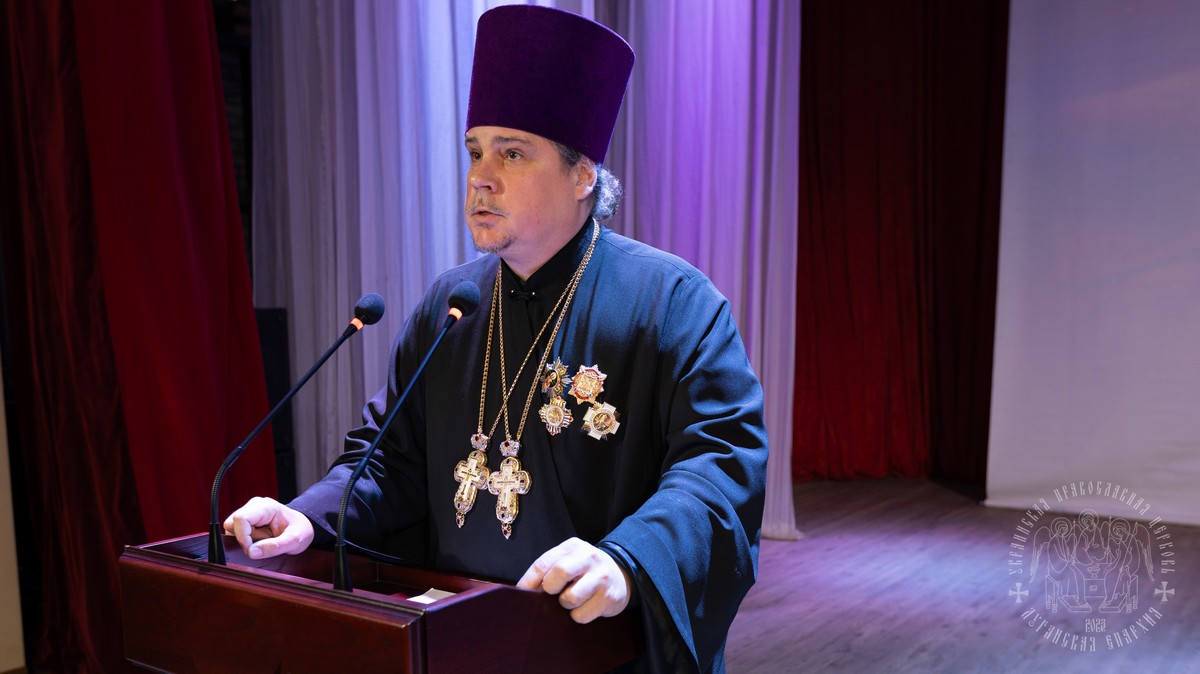 С обращением о духовно-нравственном облике священнослужителя к участникам собрания выступил духовник Луганской епархии протоиерей Владимир Соловей.