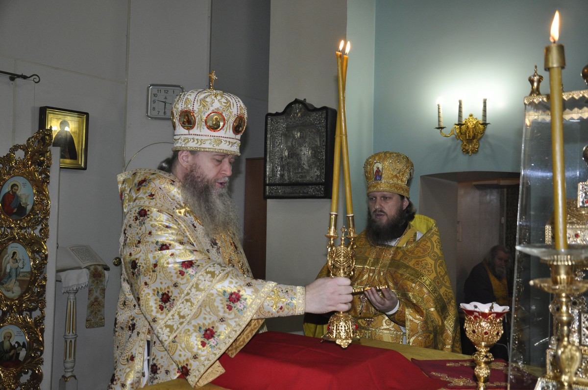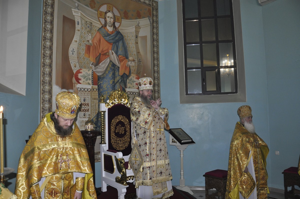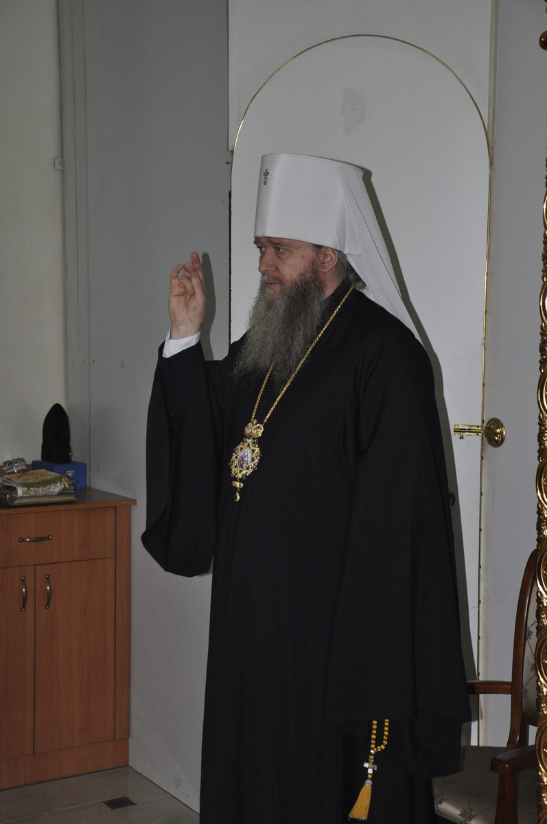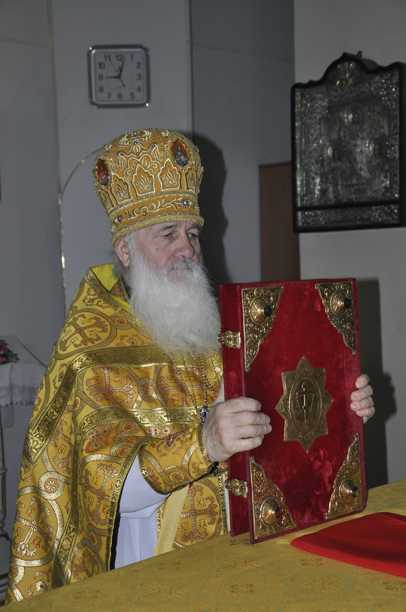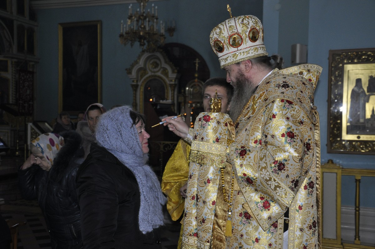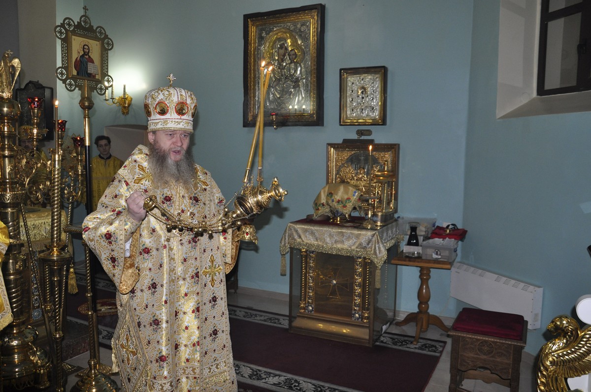 После сугубой ектении владыка вознес молитву о мире на Святой Земле, молитву о мире на святой Руси, и молитву об исцелении болящих.