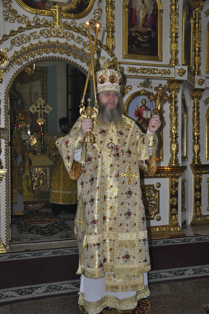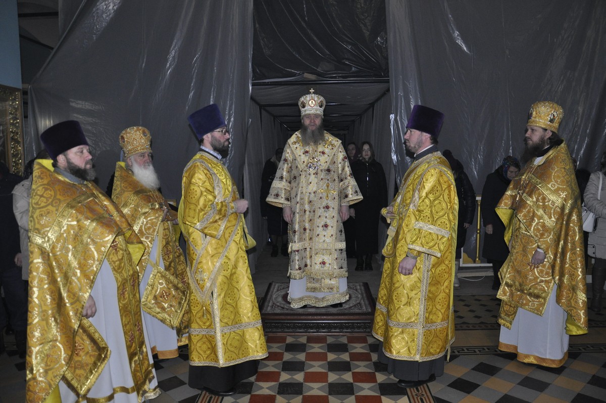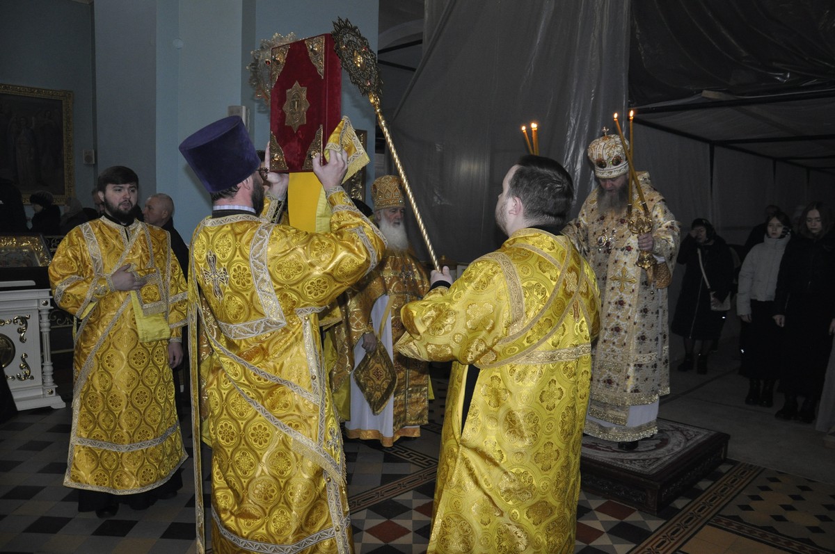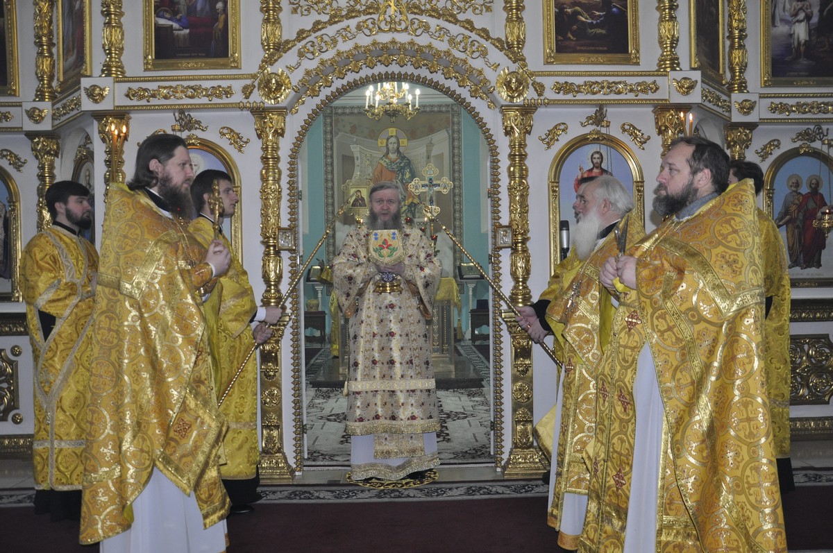Накануне воскресного дня, архипастырь совершил Всенощное бдение в Свято-Петро-Павловском кафедральном соборе.