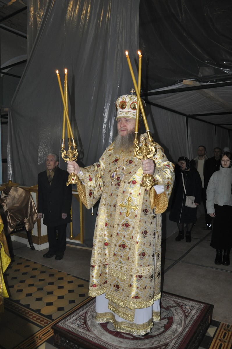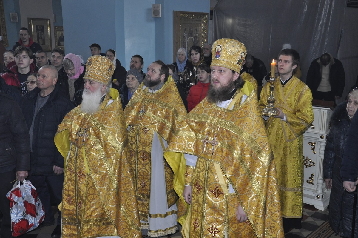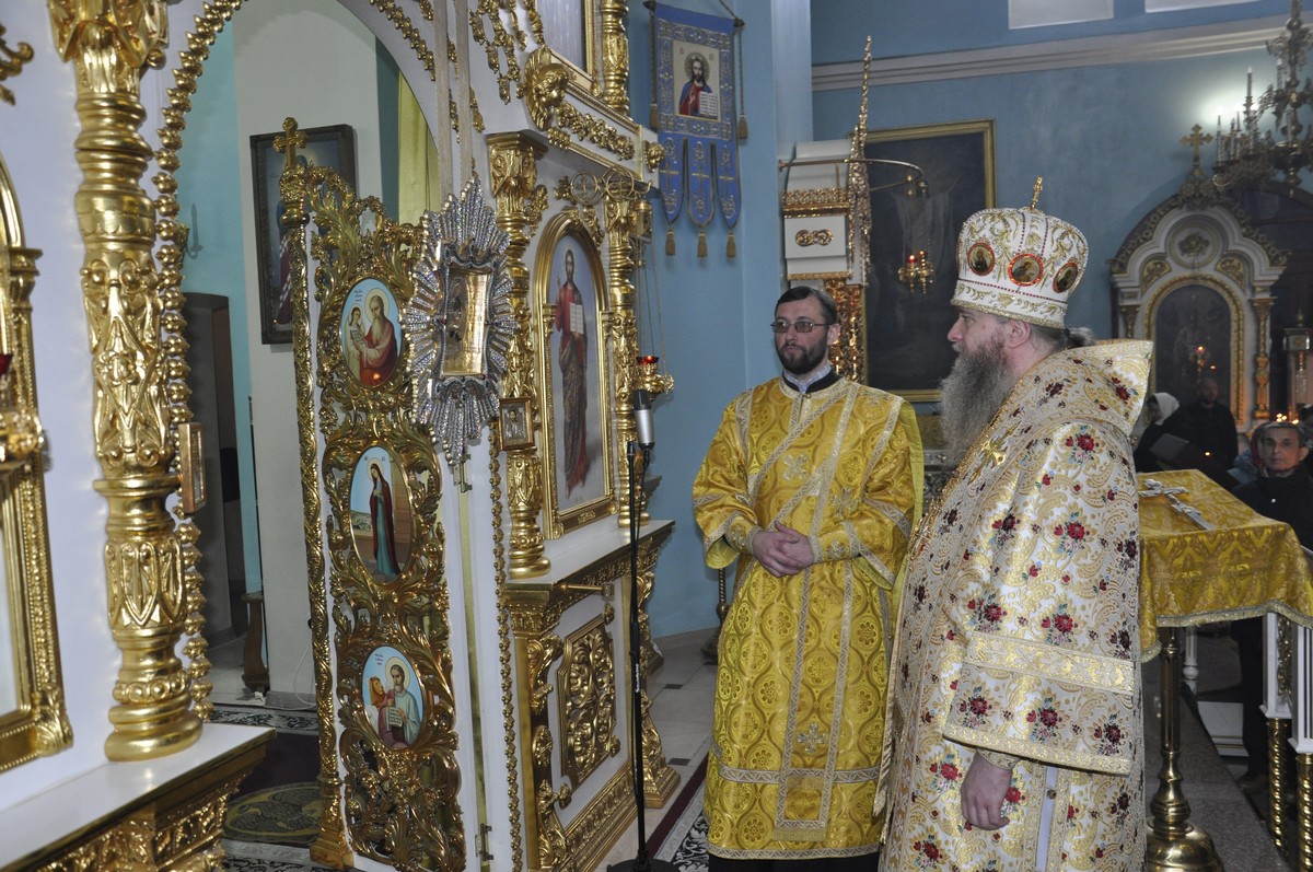 За Божественной литургией Его Высокопреосвященству сослужил секретарь епархии прот. Андрей Зозуля, а также соборное духовенство.
