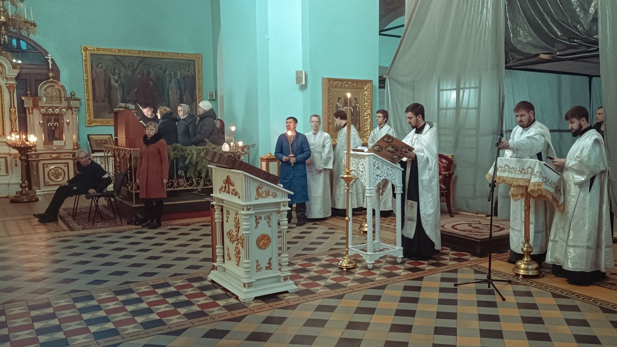 Луганск. Последование Царских часов Запись опубликована:05.01.2024 Рубрика записи:Хроника служения: 5 января, в преддверии праздника Рождества Христова, Высокопреосвященнейший Пантелеимон, митрополит Луганский и Алчевский, в сослужении духовенства кафедрального собора, совершил чтение Царских часов. Пресс-служба Луганской епархии просмотров: 209