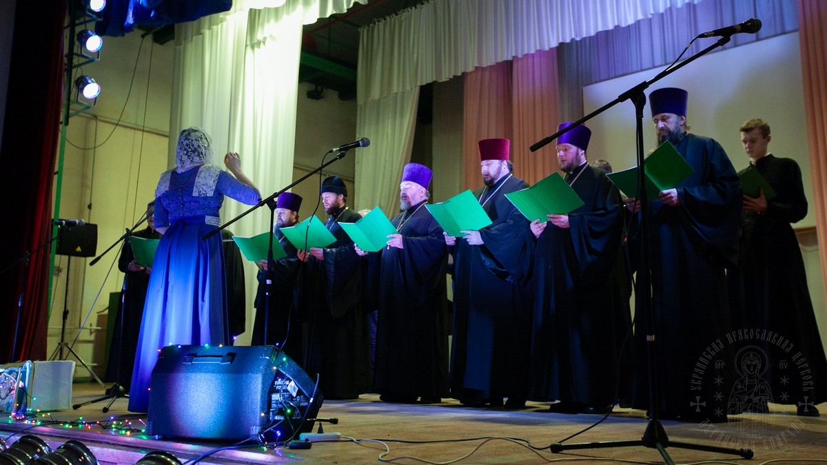 Дети воскресных школ, хоровые коллективы и духовенство благочиния исполнили колядки, стихи и сцены, повествующие о пришествии в мир Спасителя.