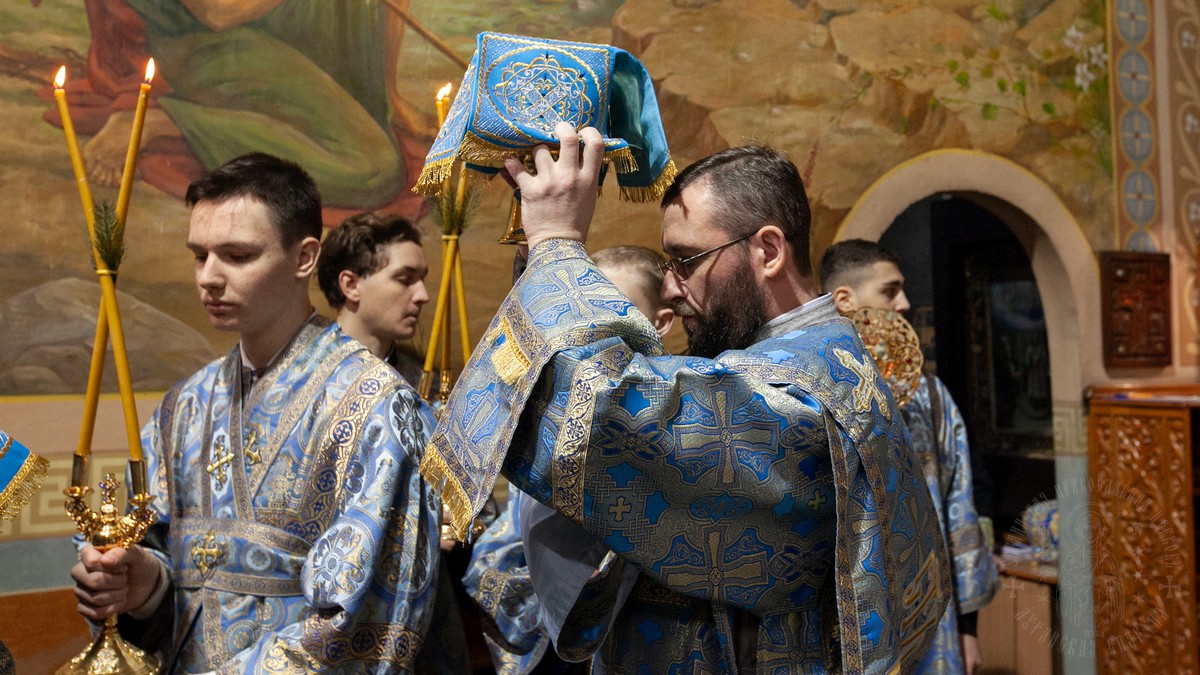 После сугубой ектении владыка вознес молитву о мире на Святой Земле, молитву о мире на святой Руси, и молитву об исцелении болящих.