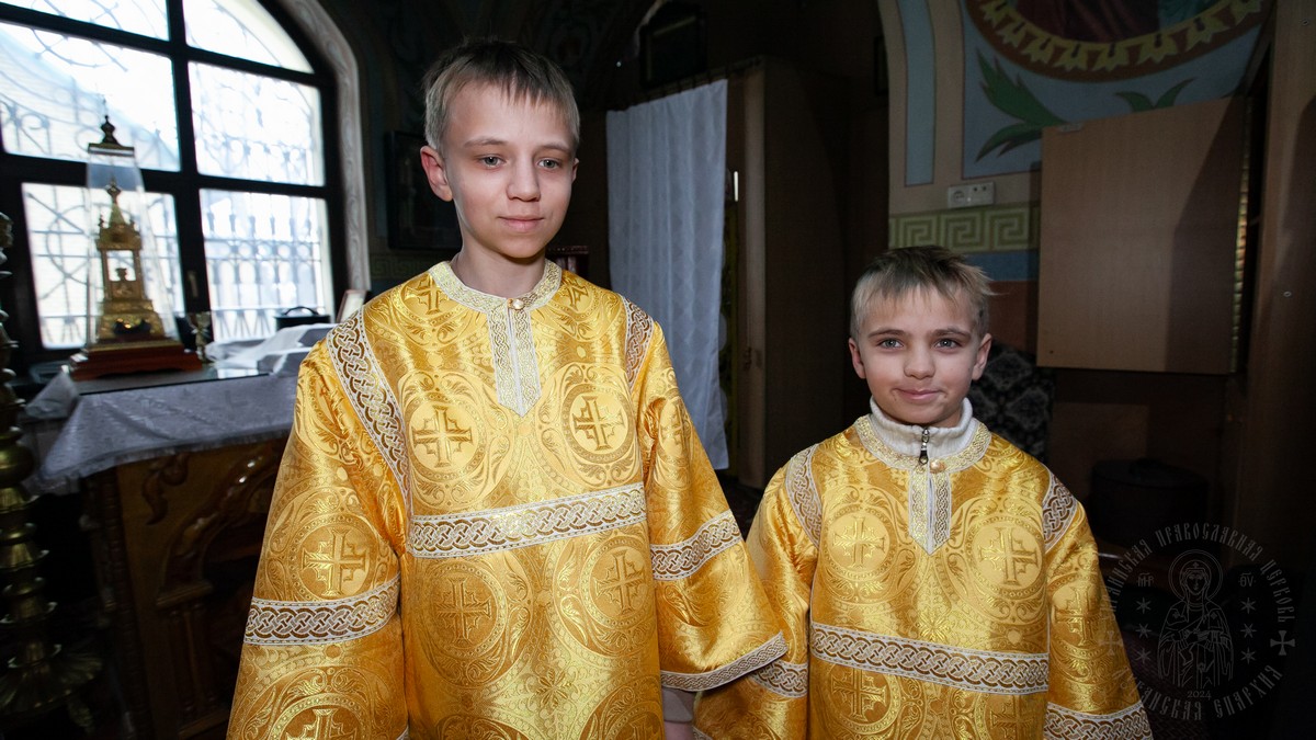 За Литургией Его Высокопреосвященству сослужил секретарь епархии прот. Андрей Зозуля, благочинный Алчевского округа прот. Александр Устименко, благочинный Перевальского округа прот. Роман Колодка, а также духовенство благочиний.