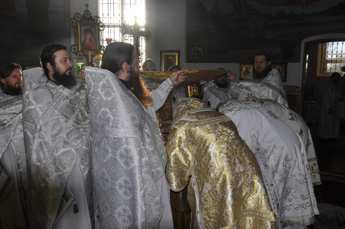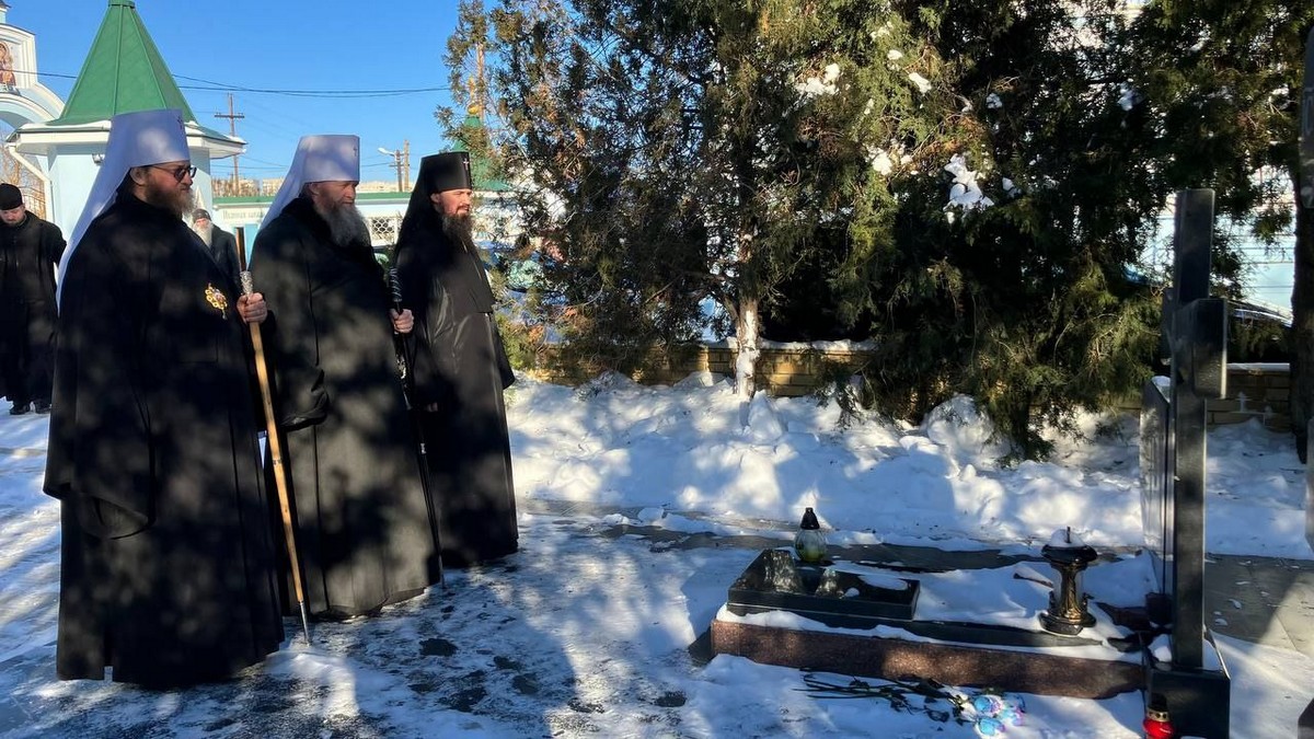 По окончании богослужения, архипастыри вознесли молитвы по почившим настоятелям Свято-Николаевского собора г. Стаханова.