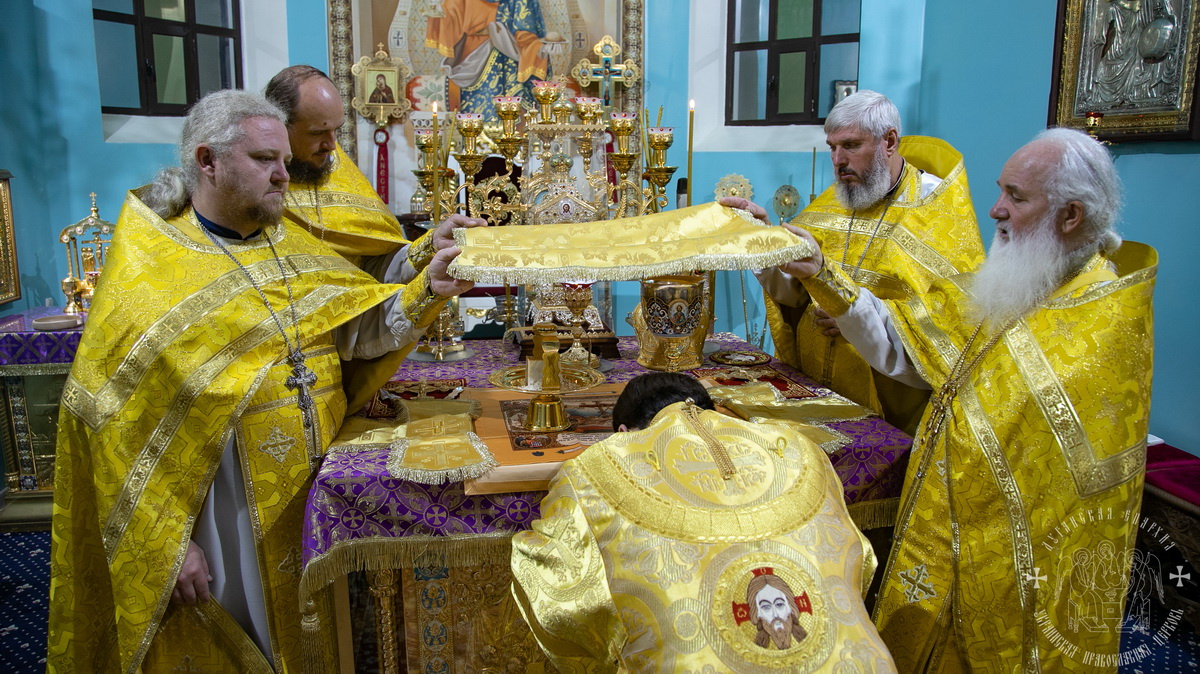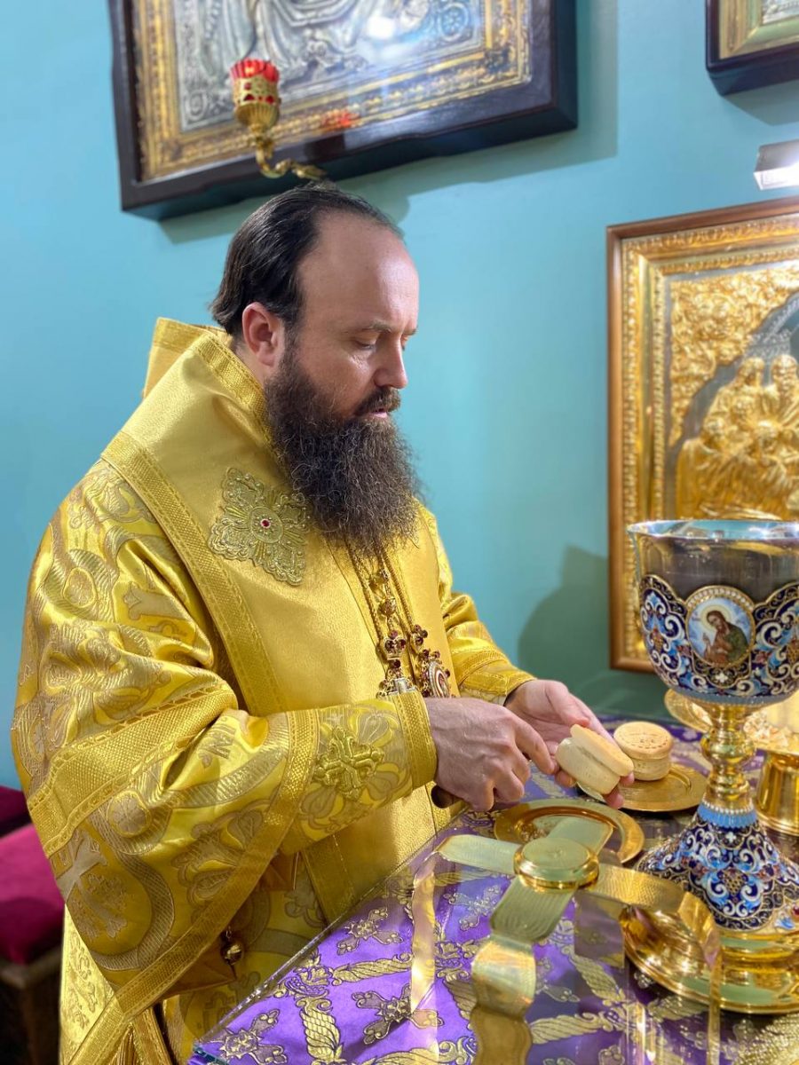 После сугубой ектении владыка вознес молитву о водворении мира в нашем Отечестве и молитву «во время распространения вредоносного поветрия».