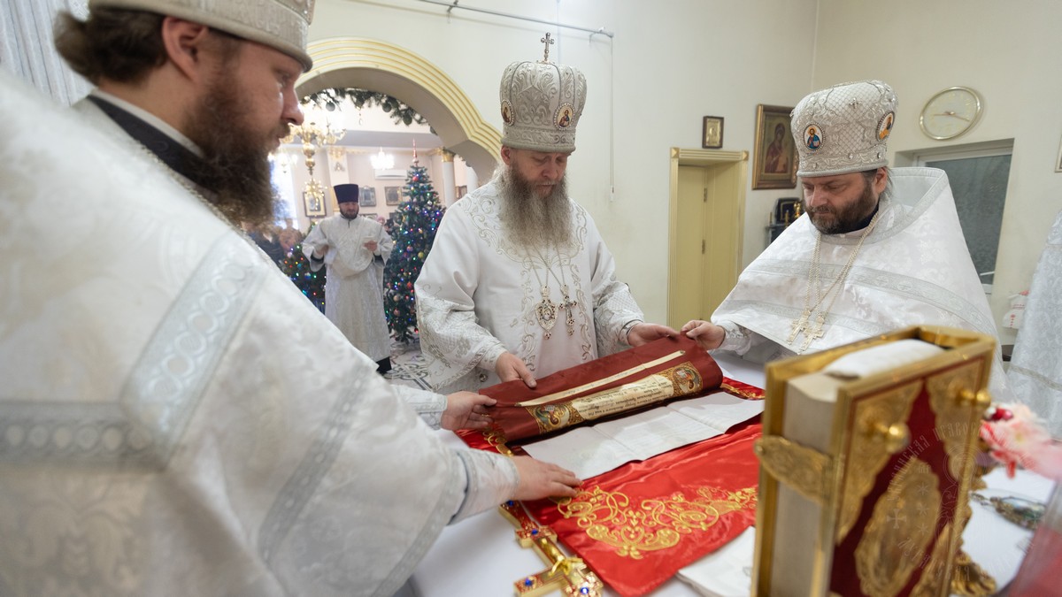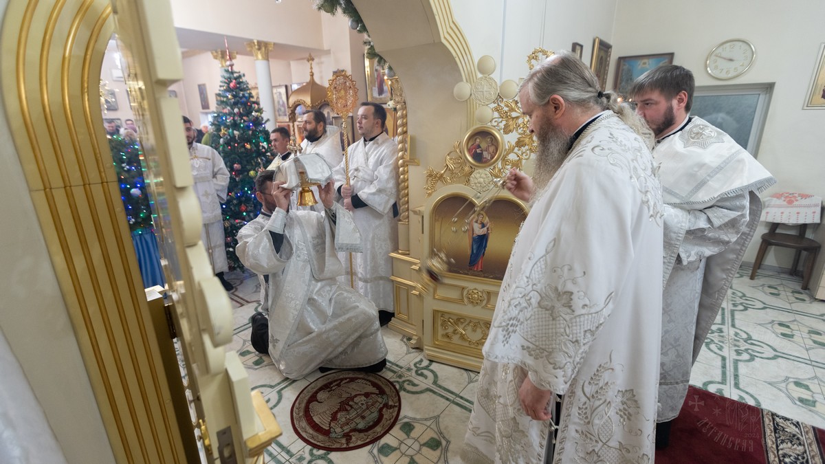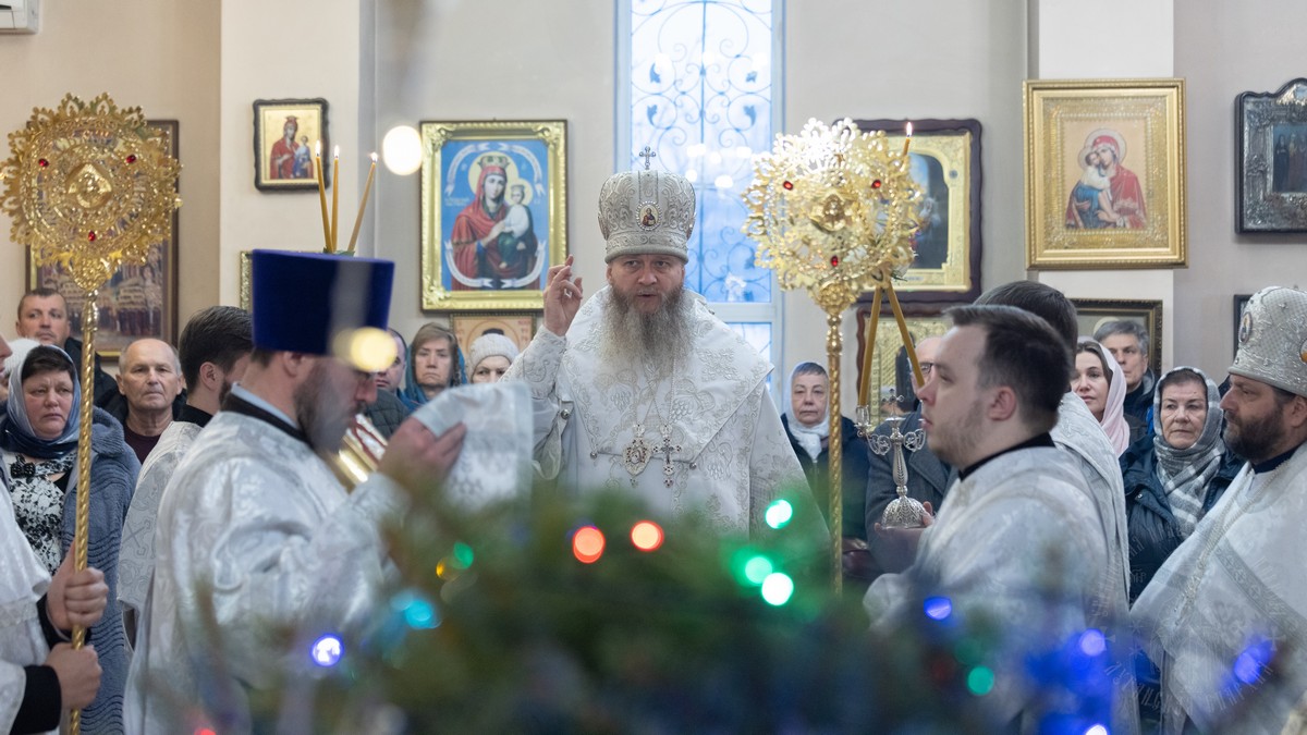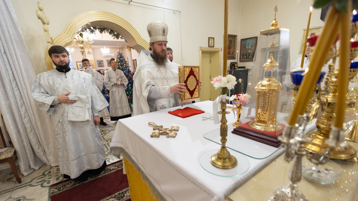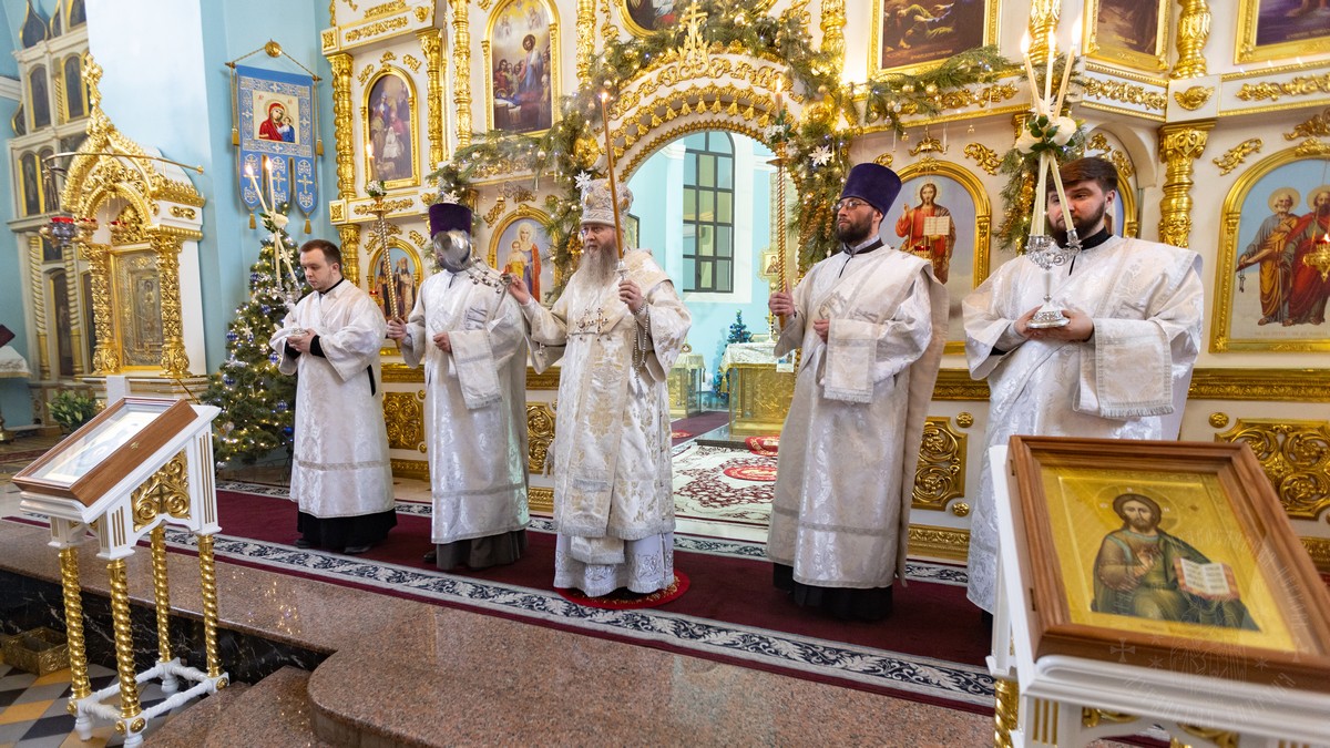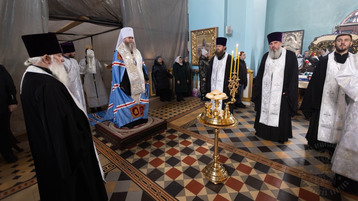 Вечером, накануне праздника, владыка совершил Утреню Богоявления в Свято-Петро-Павловском кафедральном соборе.