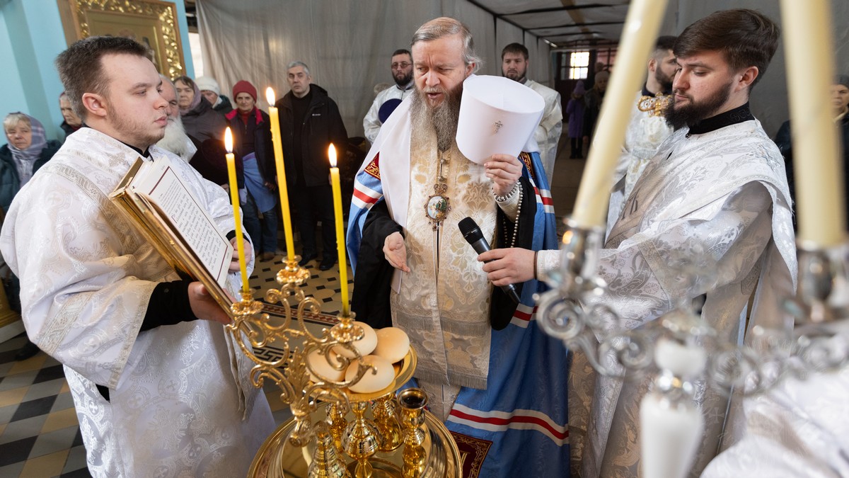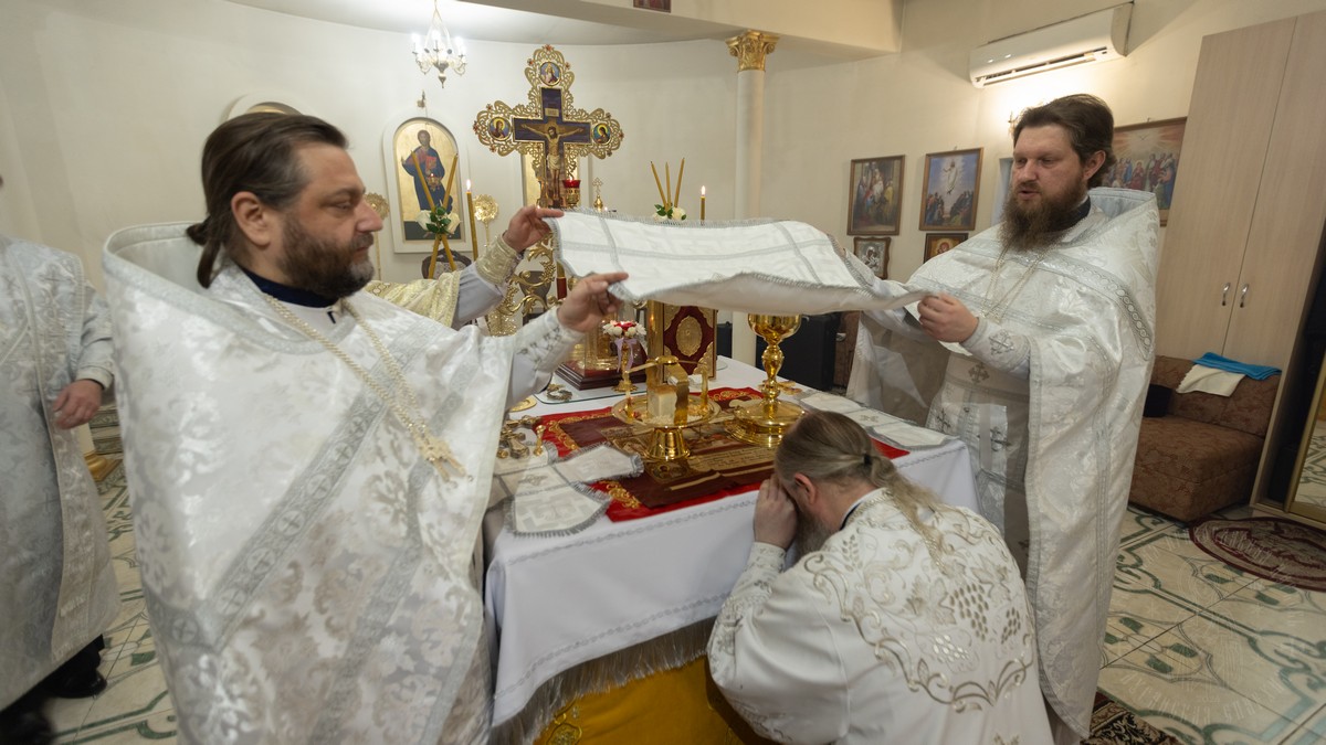 После сугубой ектении владыки вознесли молитву о мире на Святой Земле, молитву о мире на святой Руси, и молитву об исцелении болящих.