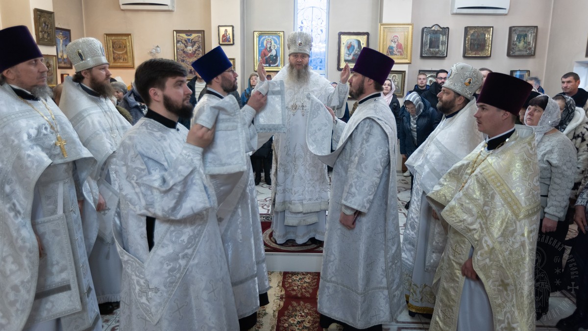 За Божественной литургией Его Высокопреосвященству сослужил секретарь епархии прот. Андрей Зозуля, благочинный первого городского округа и настоятель храма прот. Владимир Чесноков, а также приходское духовенство.
