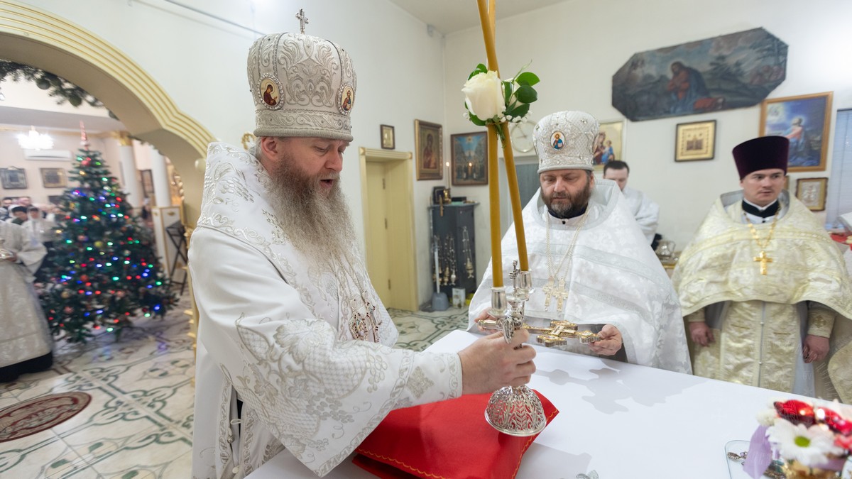 19 января, в праздник Богоявления, Крещения Господа Бога и Спаса нашего Иисуса Христа, Высокопреосвященнейший Пантелеимон, митрополит Луганский и Алчевский, совершил Литургию свт. Иоанна Златоуста в храме святого апостола Андрея Первозванного.