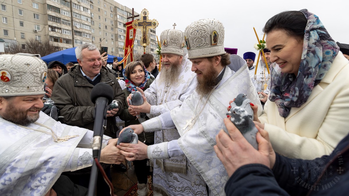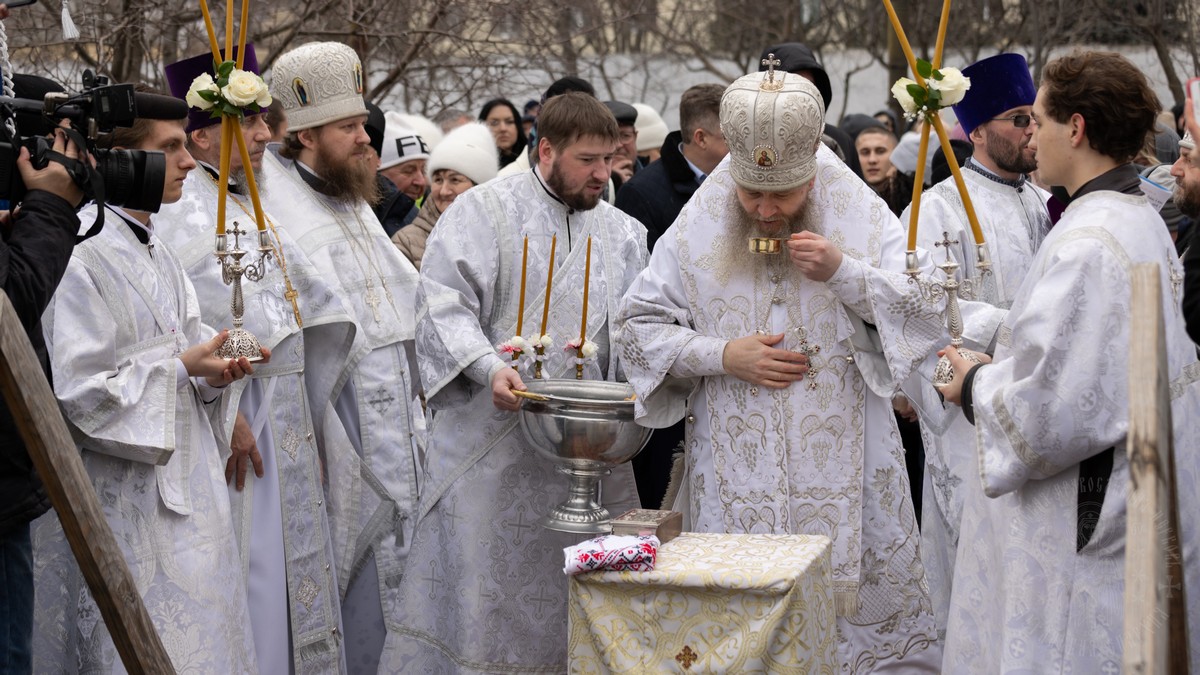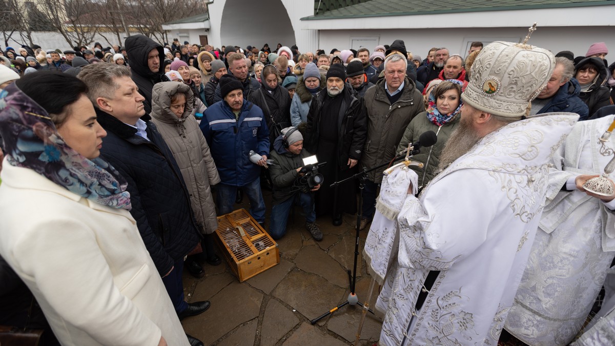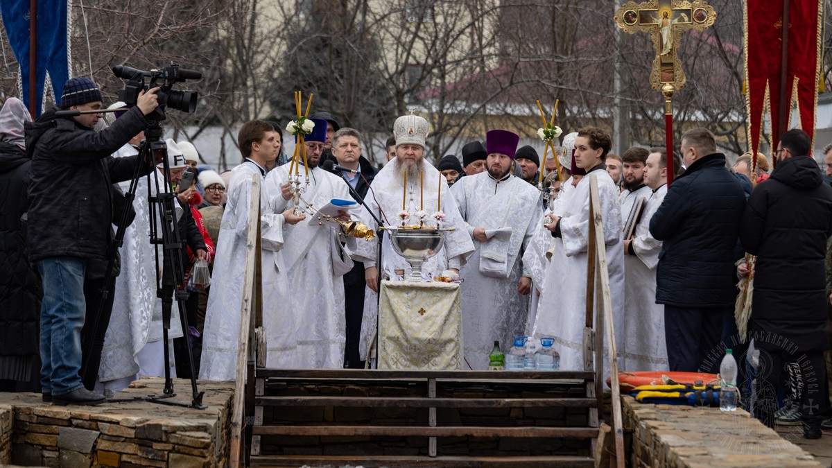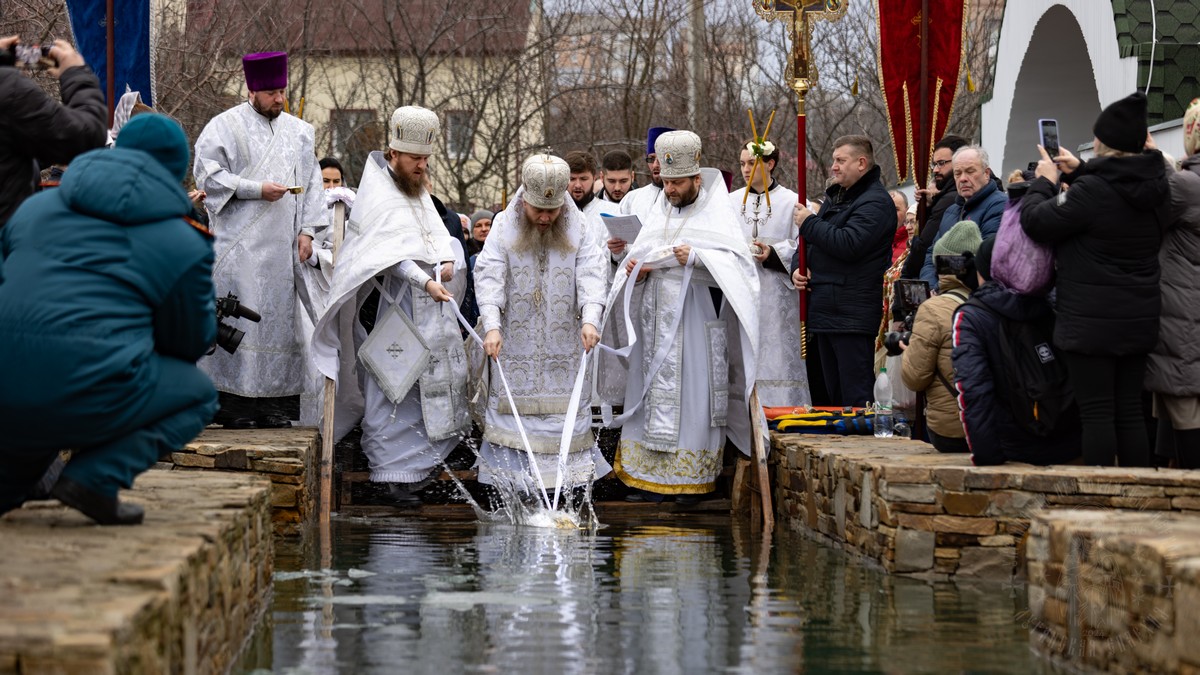 После чина освящения, священнослужители с архипастырем, выпустили в небо голубей, символизирующих Дух Божий, который сошел с небес на Христа в виде голубя, в момент Крещения Его в водах Иордана.