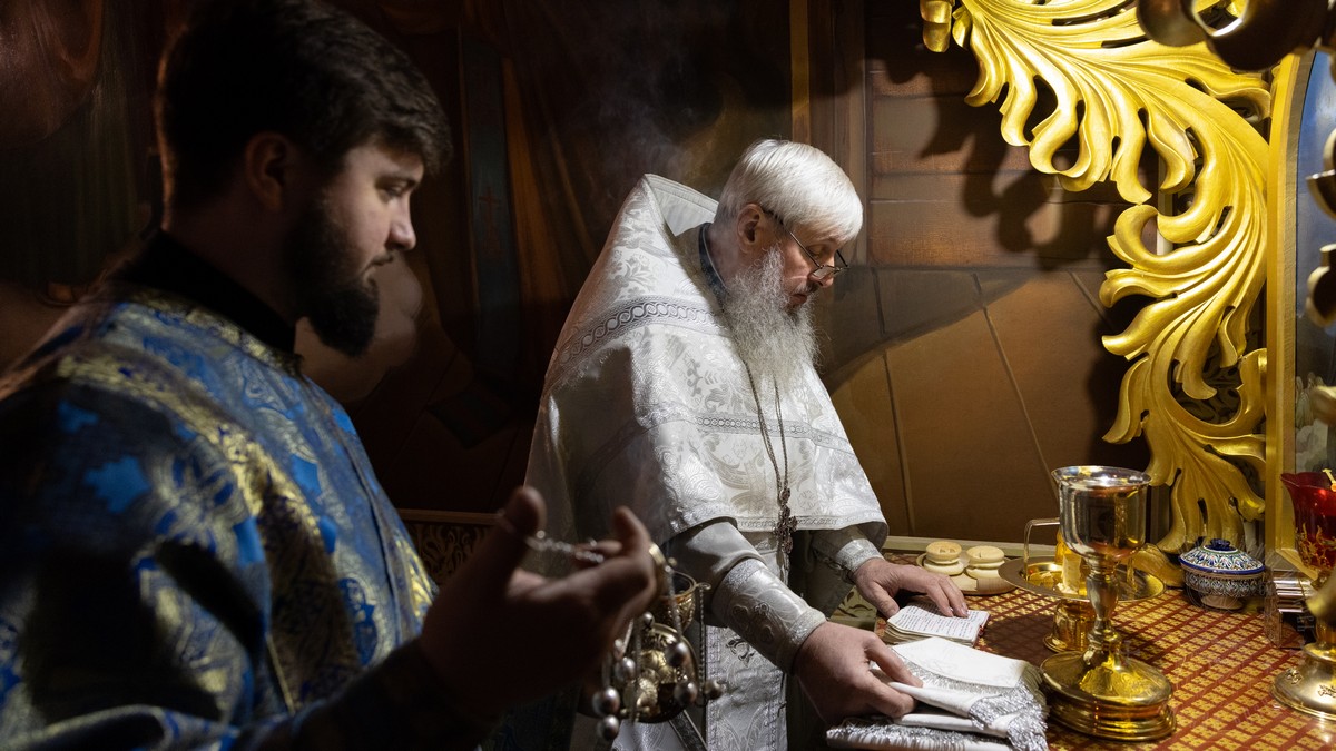Затем, седмичный священник совершил Божественную литургию в Покровском приделе кафедрального собора.