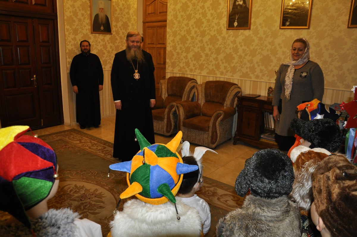 Малыши пришли, чтобы поздравить владыку с Рождественскими святками, пропеть песнопения и колядки, прочесть стишки, посвященные Рождеству Христову и подарить праздничное настроение.