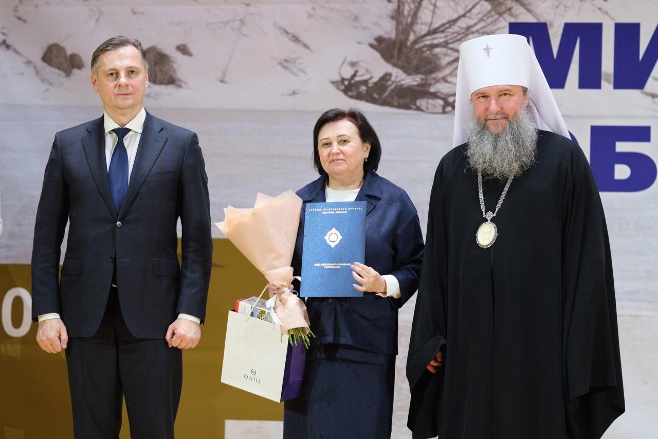 На этом заседании, митрополитом Екатеринбургским и Верхотурским Евгением, Председателем Отдела религиозного образования и катехизации была награждена Кирмач Галина Анатольевна, кандидат педагогических наук, доцент кафедры педагогики ЛГПУ, автор учебника «Православная педагогика» для студентов ВУЗа, директор духовно- просветительского центра имени св. прп. Нестора Летописца при ЛГПУ грамотой и памятным подарком как победитель конкурса «За нравственный подвиг учителя».