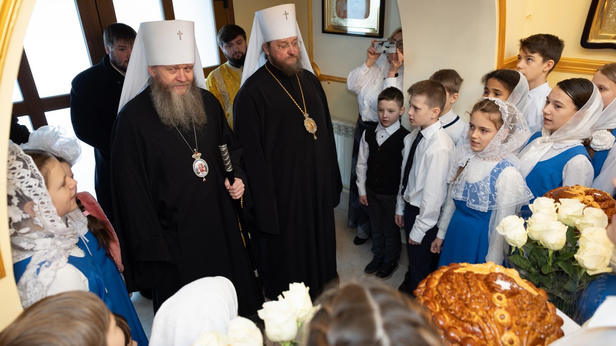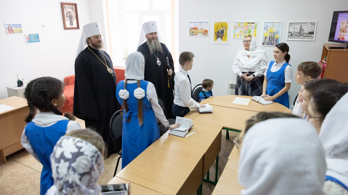 В продолжение праздника, владыки прошли по классам, ознакомились с учебным процессом, дали духовное наставление учащимся, благословили на усердные труды и успешное усвоение новых знаний.